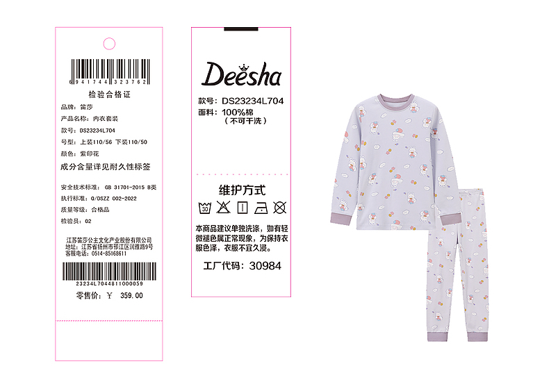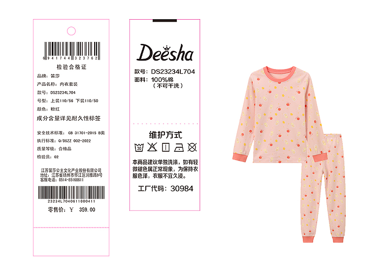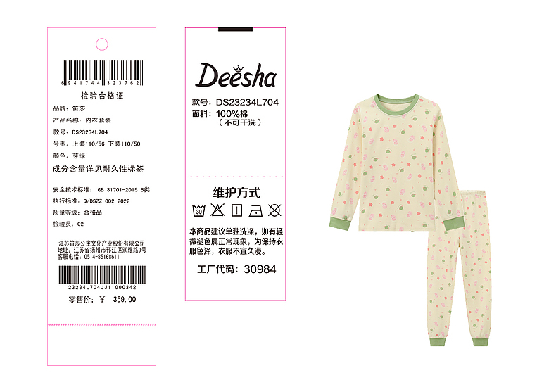 笛莎女童云感贴身保暖内衣