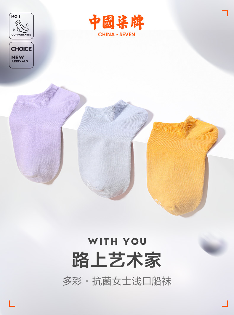 柒牌女士袜子薄款夏季时尚多彩抗菌浅口船袜ins潮纯色低帮袜短袜 119F73140
