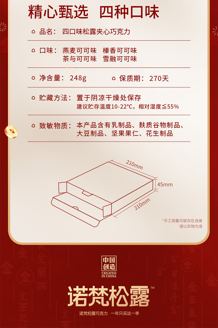 心选丨诺梵金松露巧克力礼盒情人节礼物黑松露礼盒零食送女友