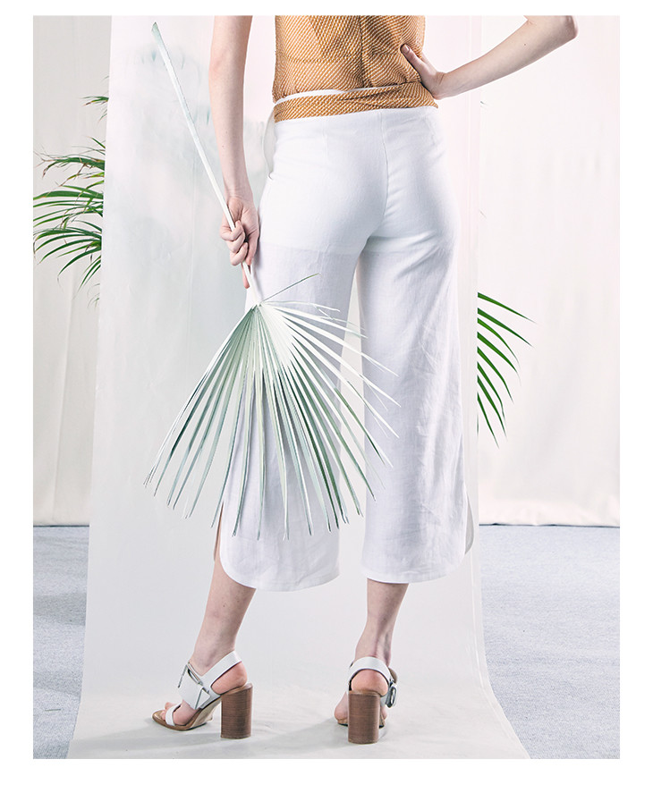 SUNDAY LIFE 2019春夏系列白色纯麻7分裤女士休闲裤looknow