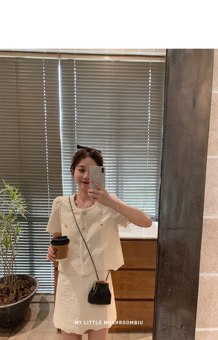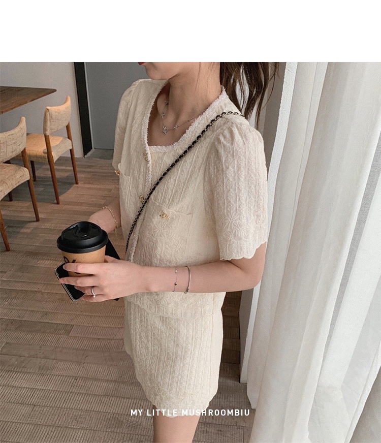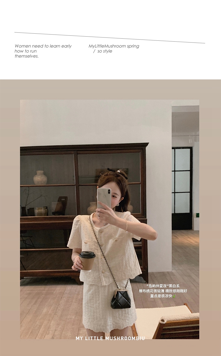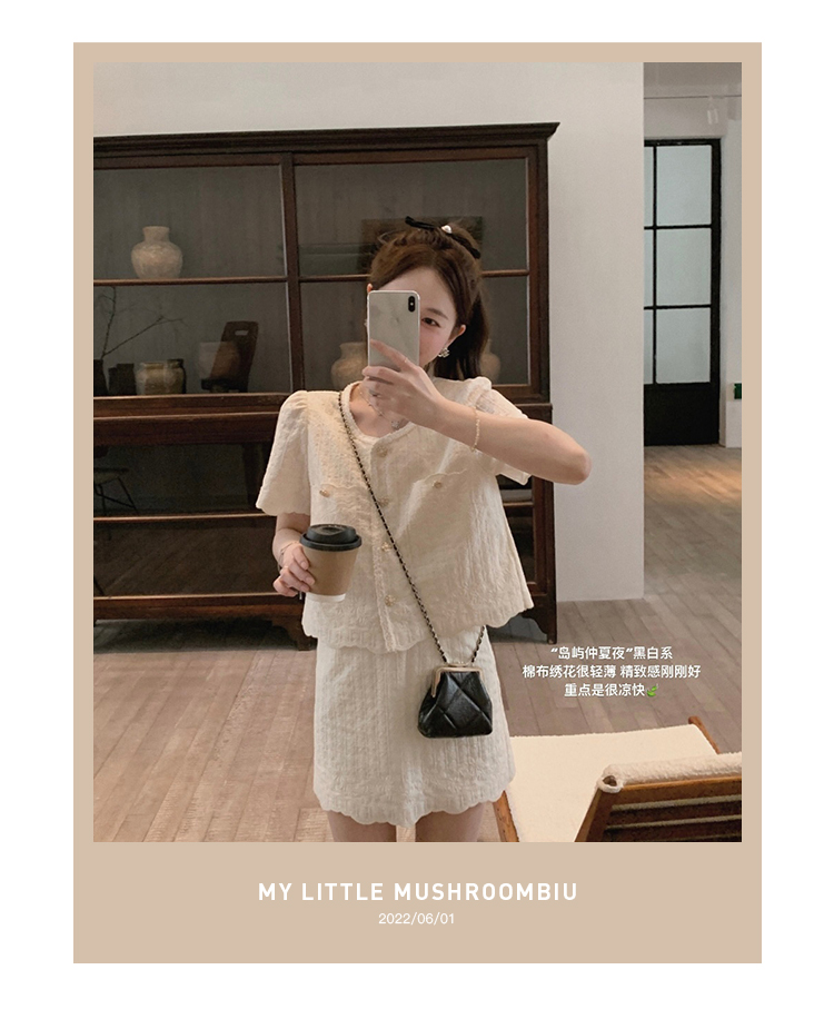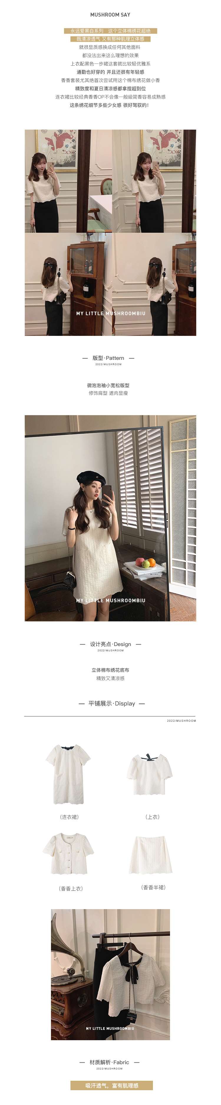 金蘑菇菇【岛屿仲夏夜】立体棉布绣花轻薄黑白复古设计感少女套装