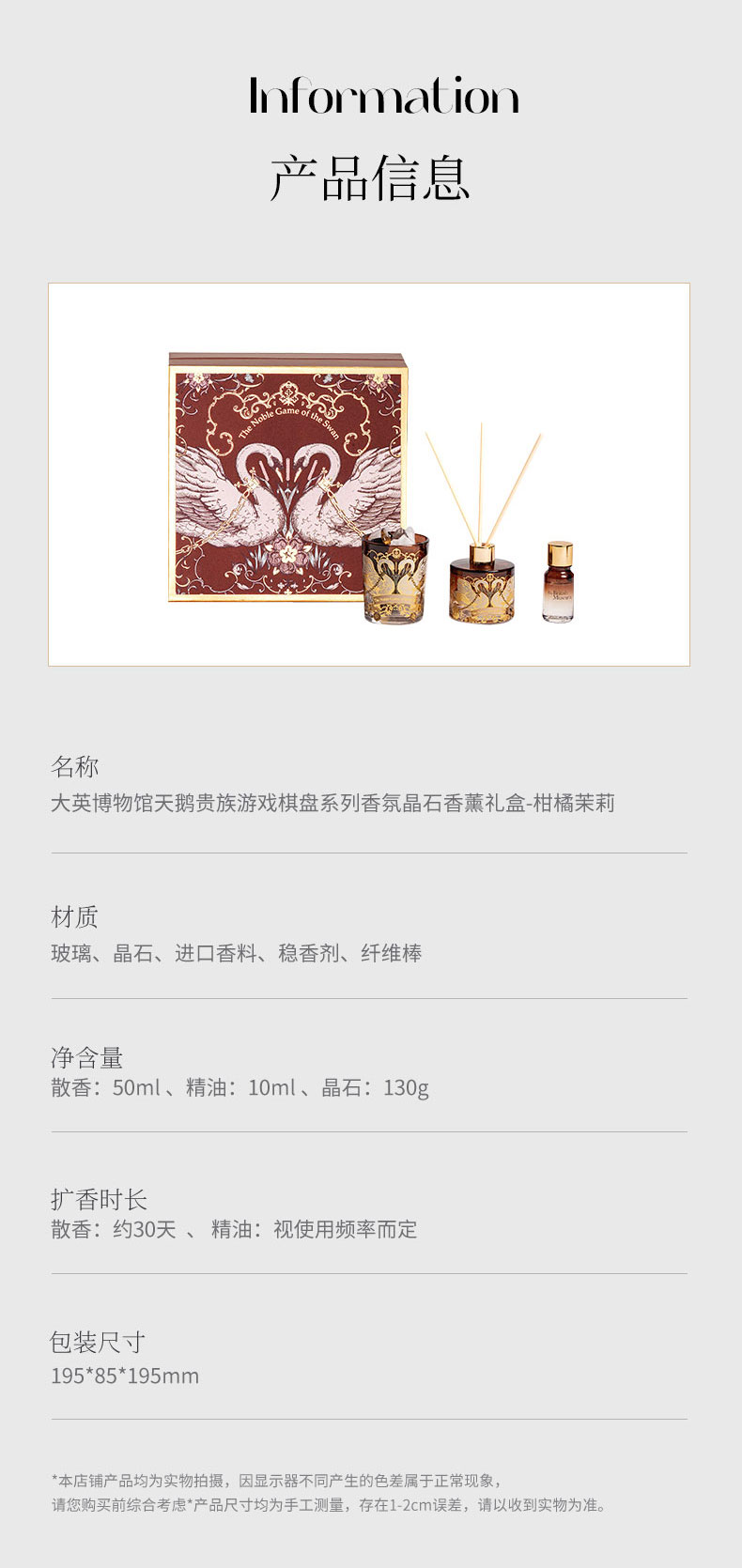 大英博物馆天鹅贵族游戏棋盘系列香氛晶石香薰礼盒-柑橘茉莉