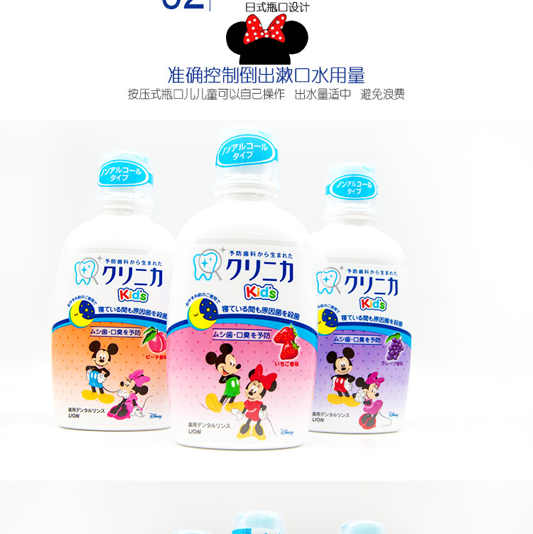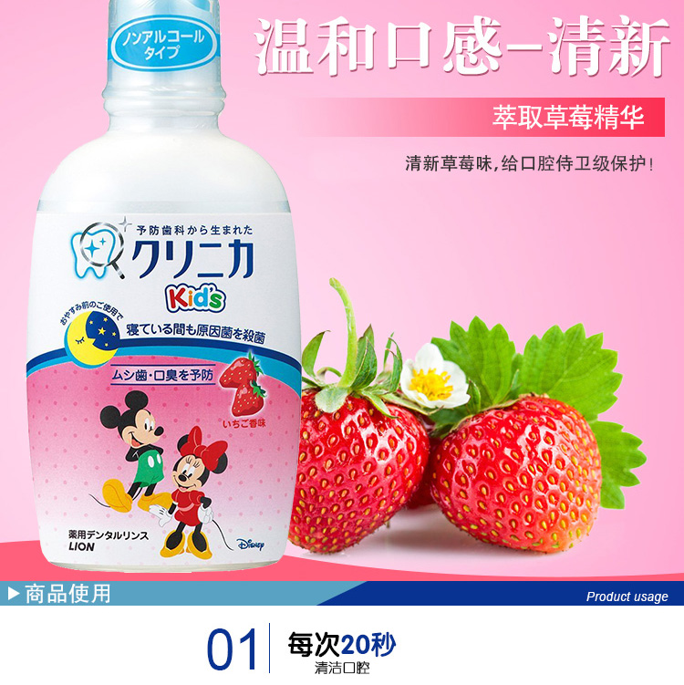 狮王米奇米妮儿童漱口水草莓味250ml/117692 温和防蛀清新口气