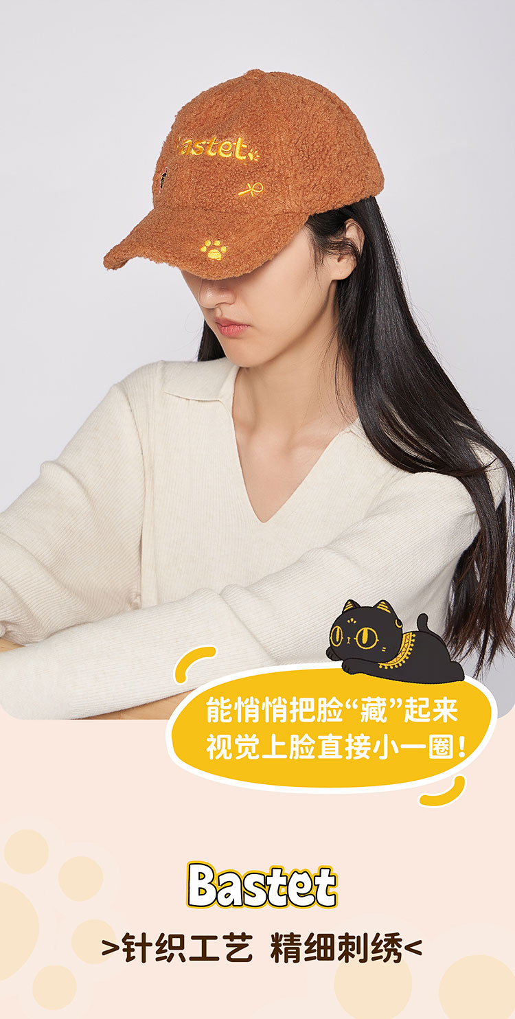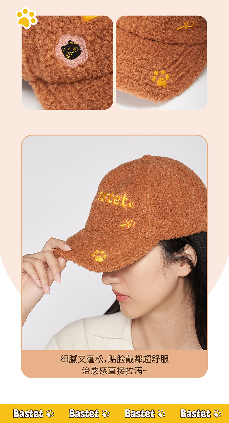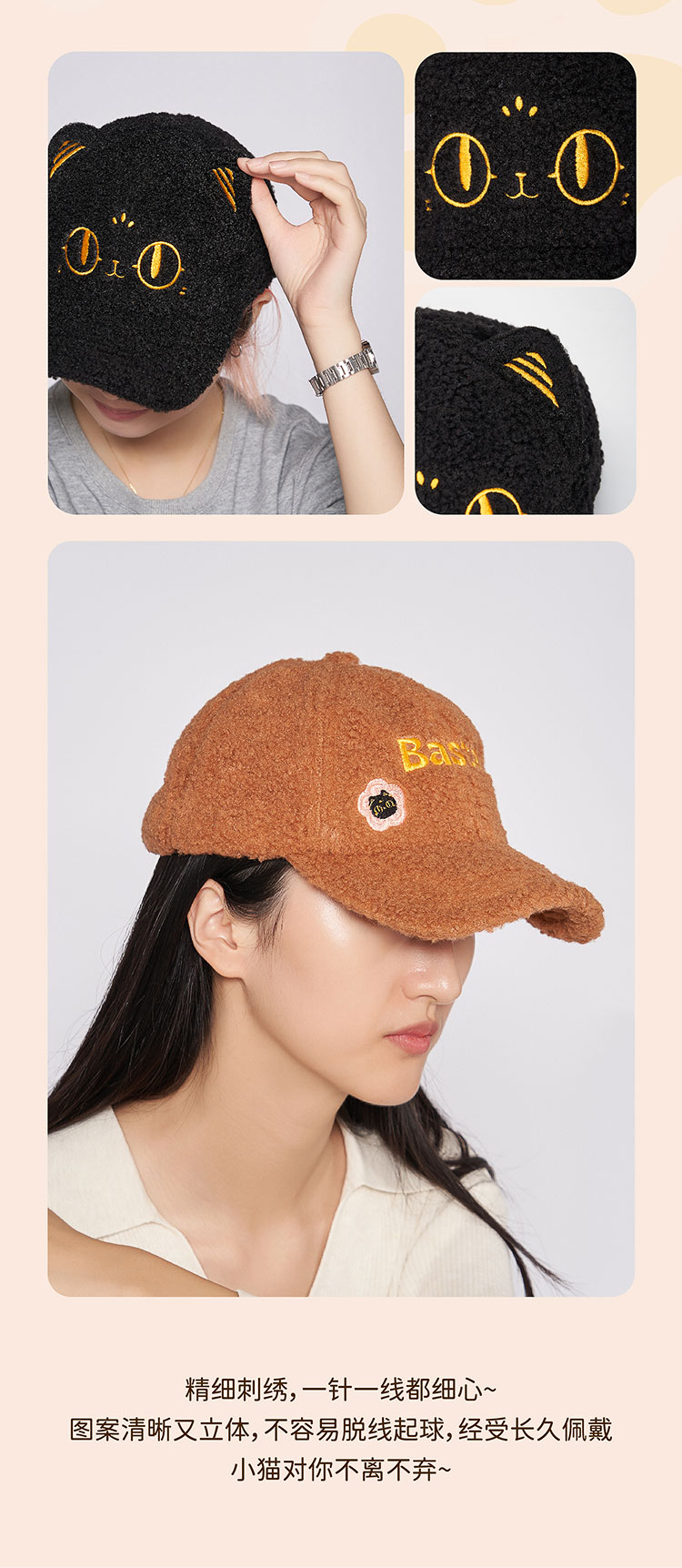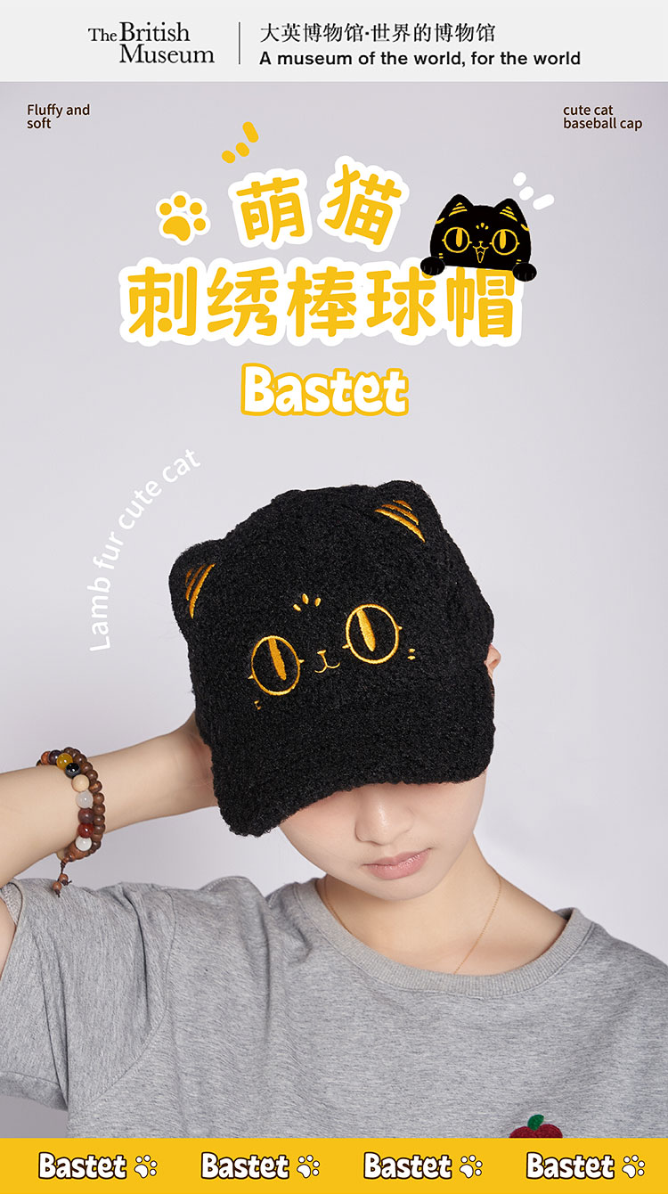 大英博物馆 盖亚·巴斯特系列 羊羔毛 萌猫刺绣 棒球帽