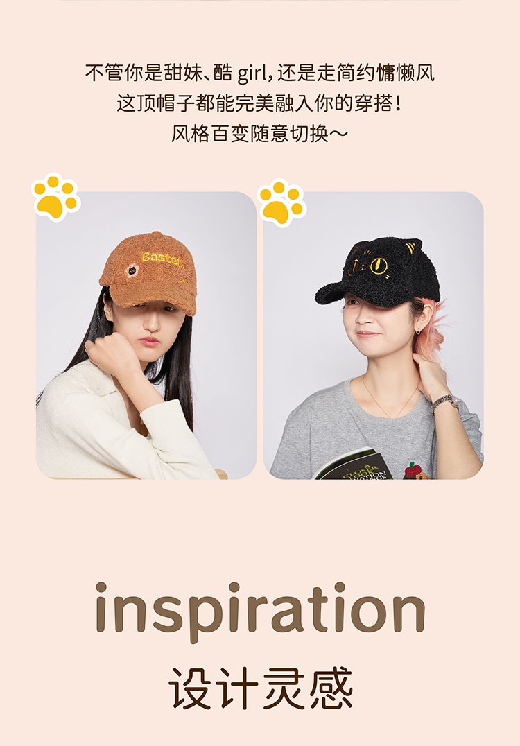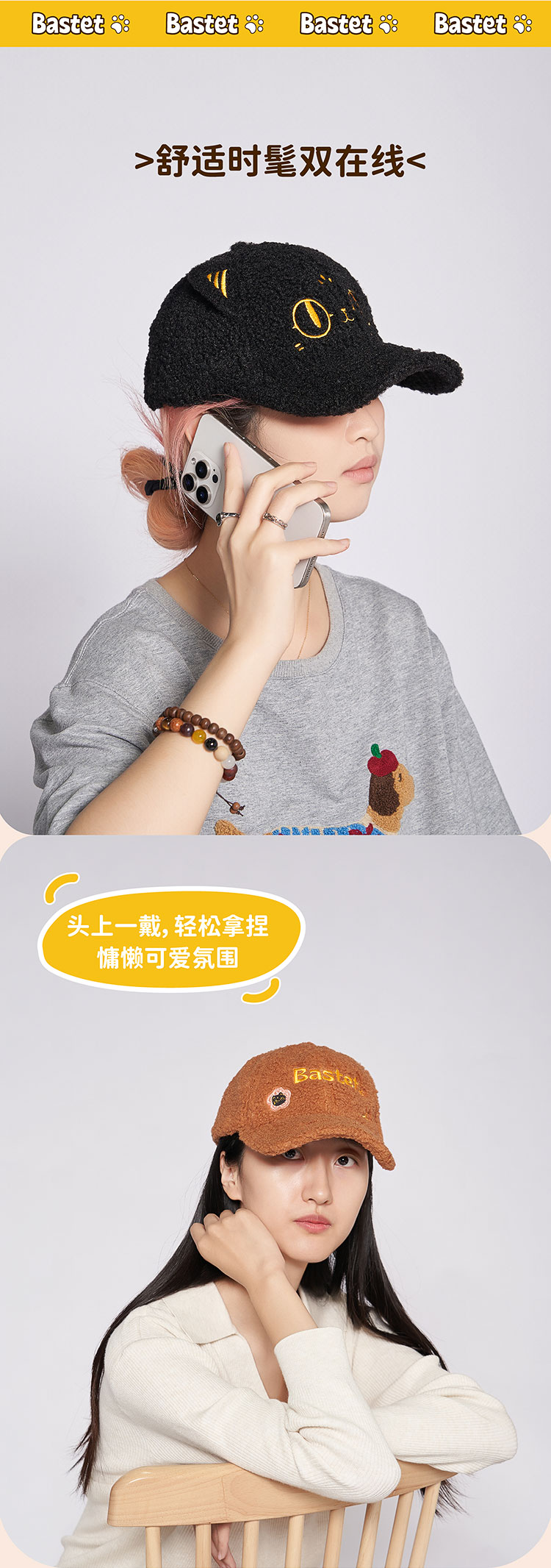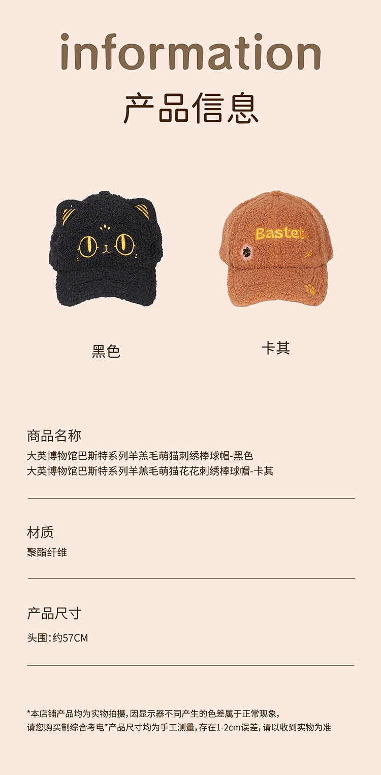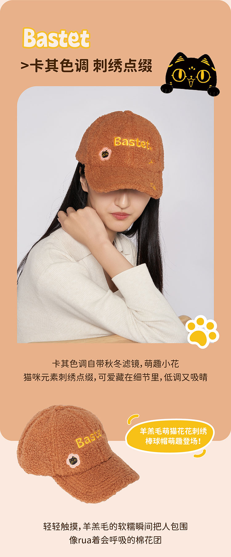 大英博物馆 盖亚·巴斯特系列 羊羔毛 萌猫刺绣 棒球帽
