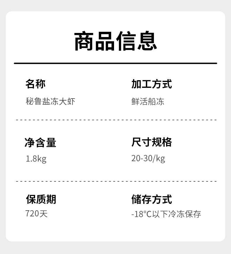 大黄鲜森 秘鲁冷冻20/30大虾 1800g
