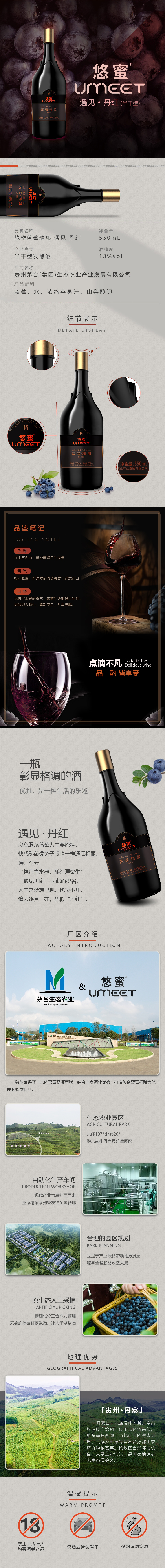 13度茅台悠蜜UMEET蓝莓精酿 遇见·丹红(半干型)550ml 单瓶