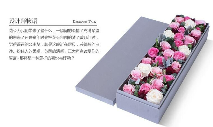 伊人如梦---粉佳人粉玫瑰12枝,苏醒玫瑰(水粉色彩玫)12枝,白玫瑰5枝,搭配银叶菊尤加利紫色小雏菊(无小菊可用 魔力铁山灰包装盒((57#))