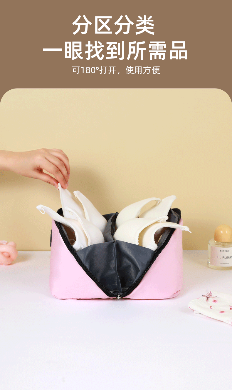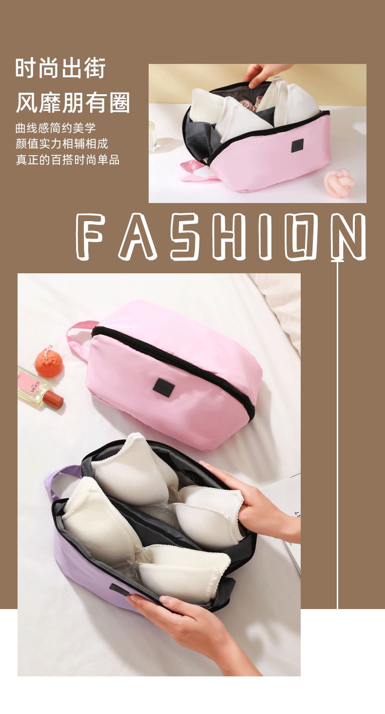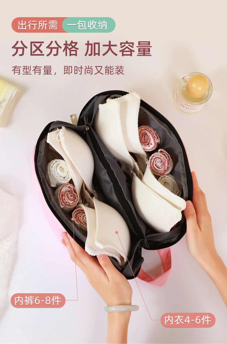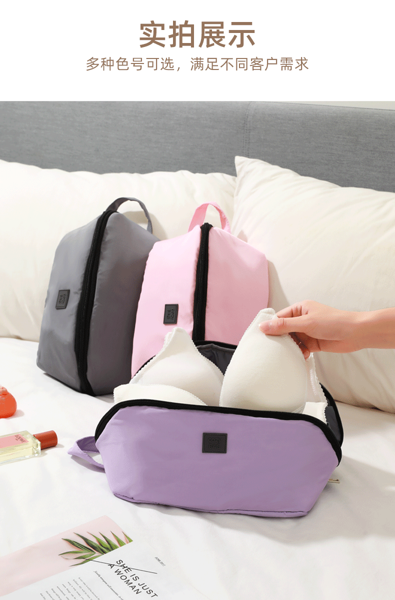 【出行所需,一包收纳!】收纳文胸包 旅行收纳 韩版布艺女款内衣便携收纳包 三合一内衣收纳袋-QQ