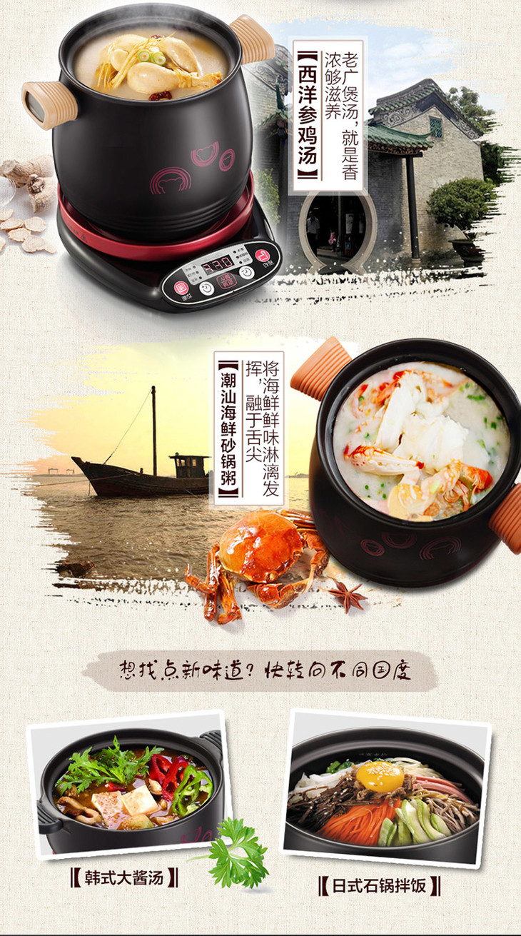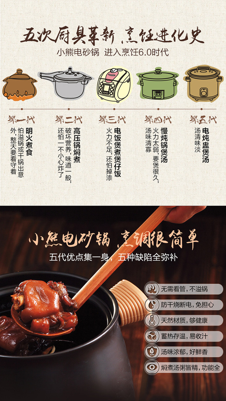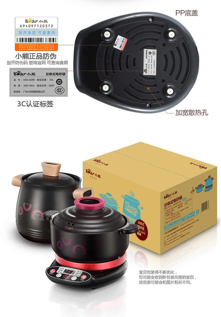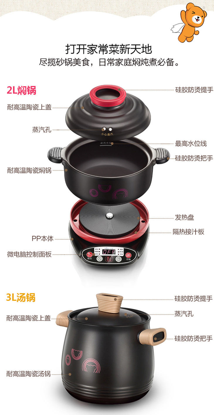 小熊(bear)电炖锅 陶瓷电砂锅煲汤锅焖锅全自动家用煮粥炖汤锅DSG-A30R5 2L+3L