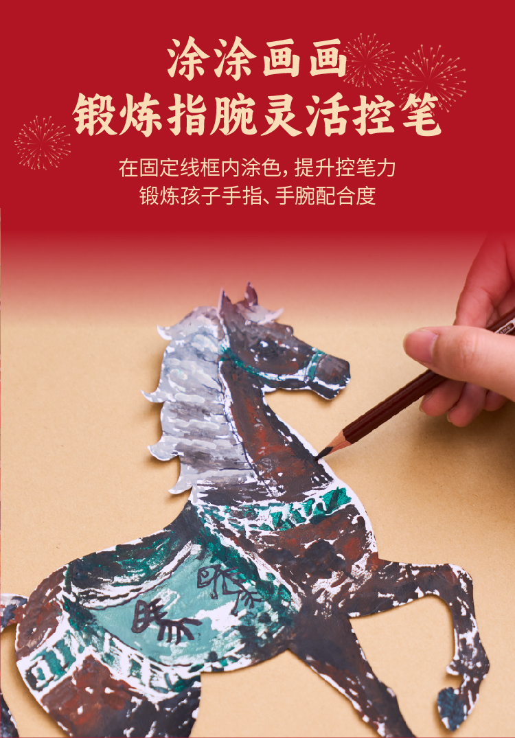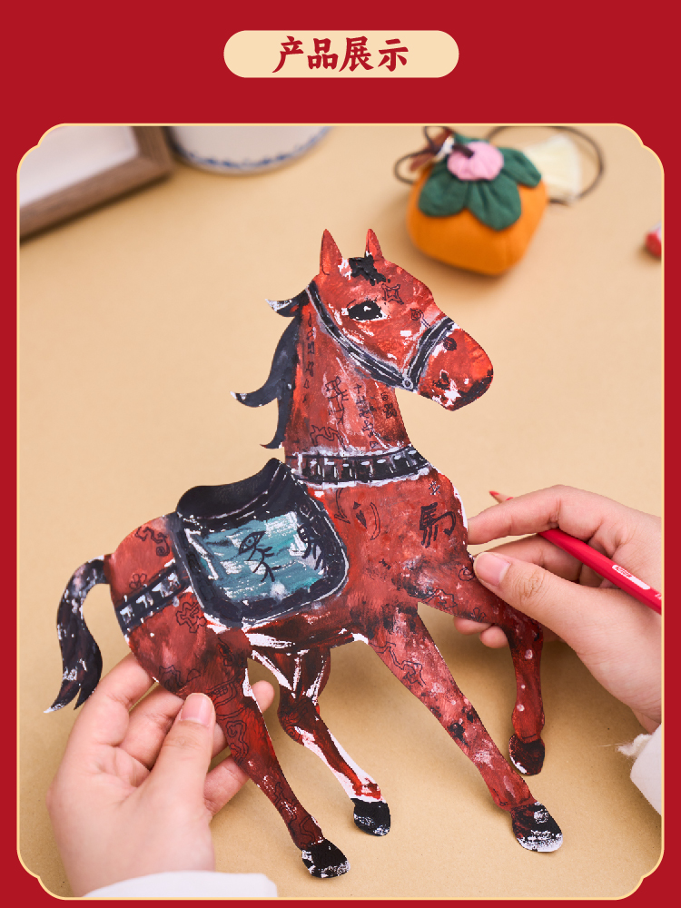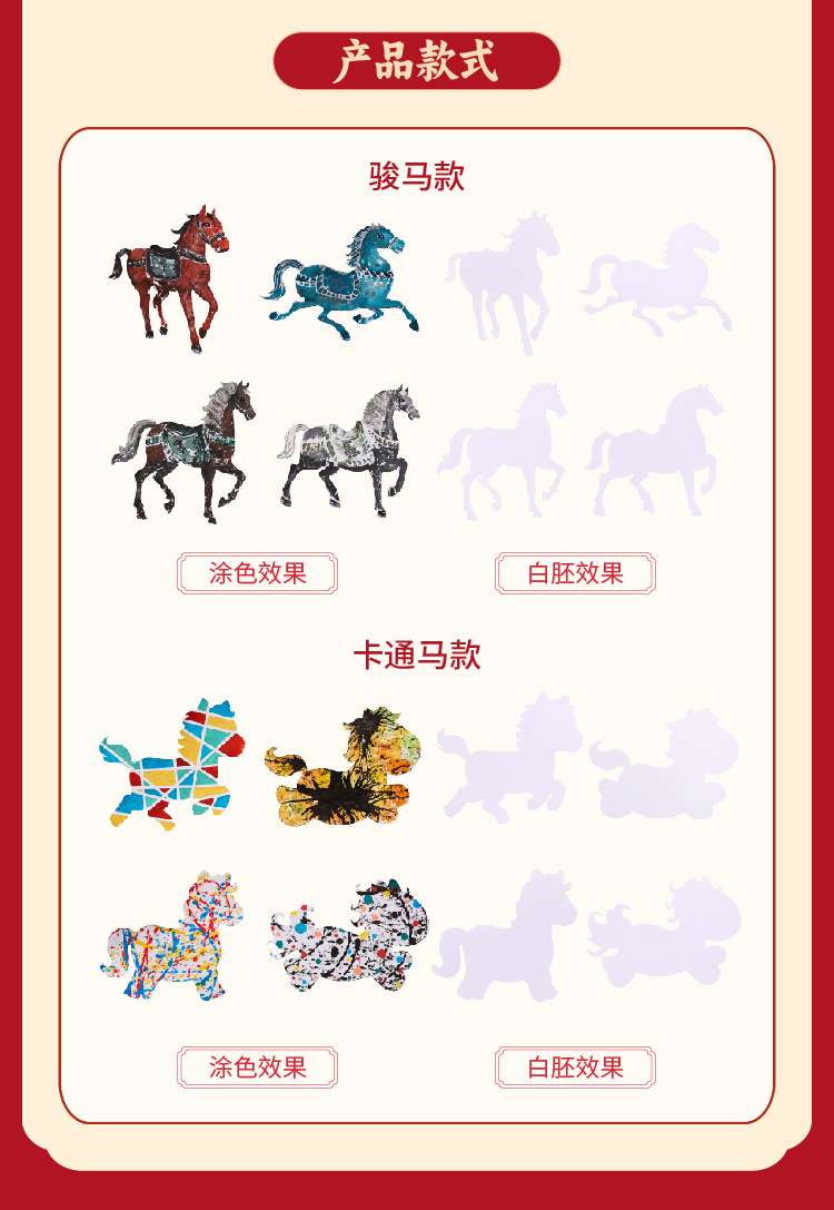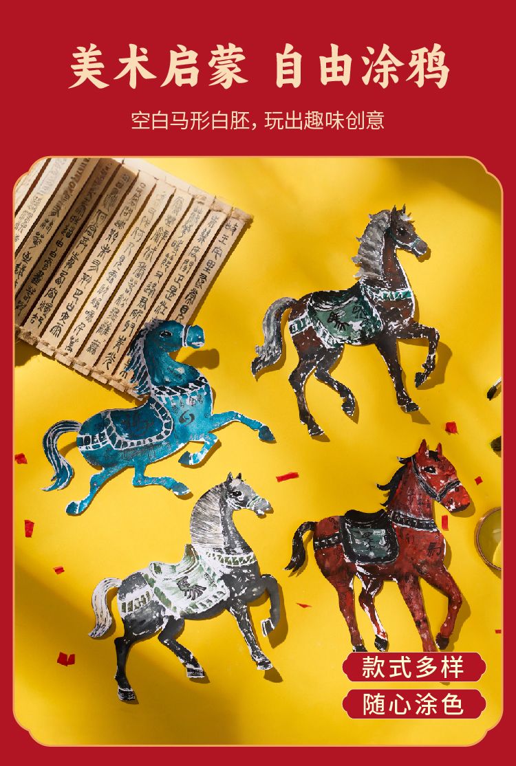 新年春节元旦马年白胚涂鸦福马手工diy儿童材料包幼儿园创意美术