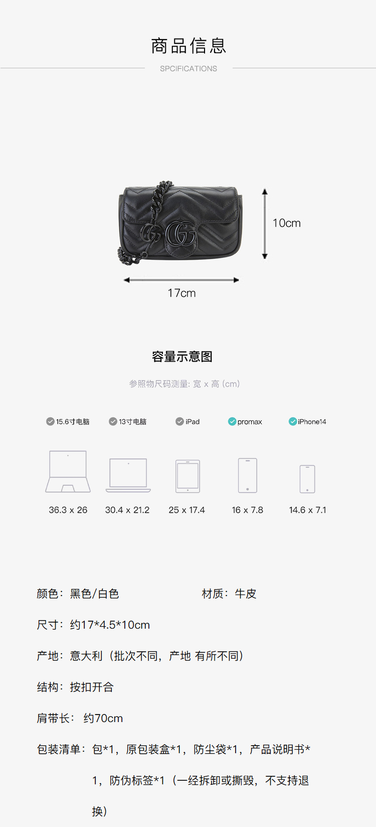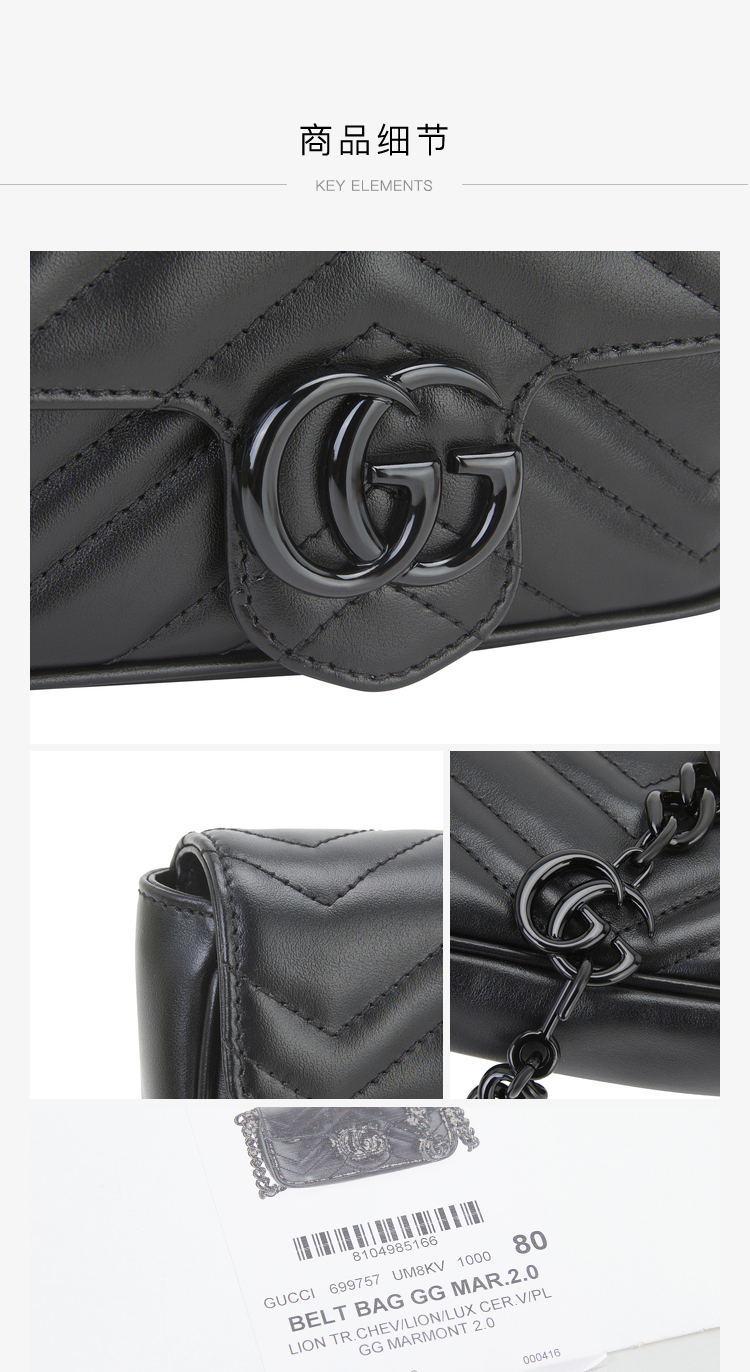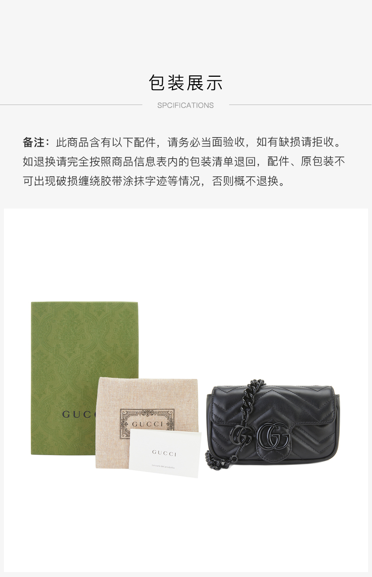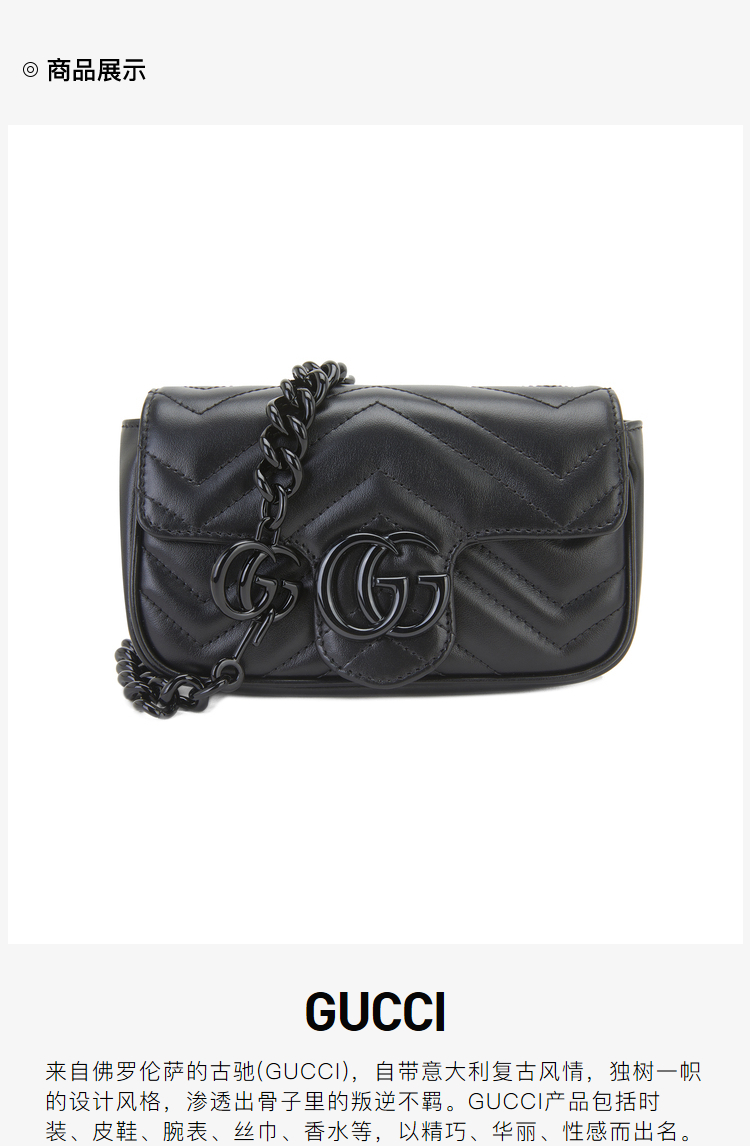 GUCCI 古驰 女士GG Marmont系列超单肩斜跨链条包牛皮链条 699757UM8KV