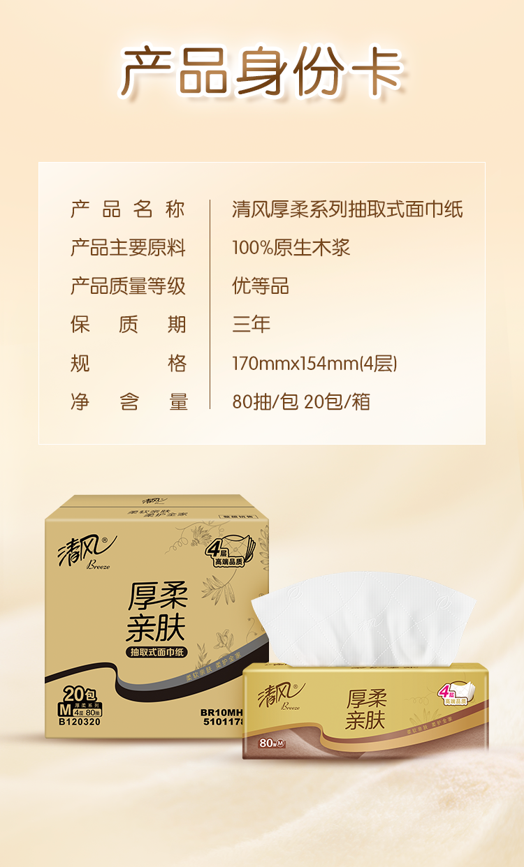清风金装抽纸4层80抽20包