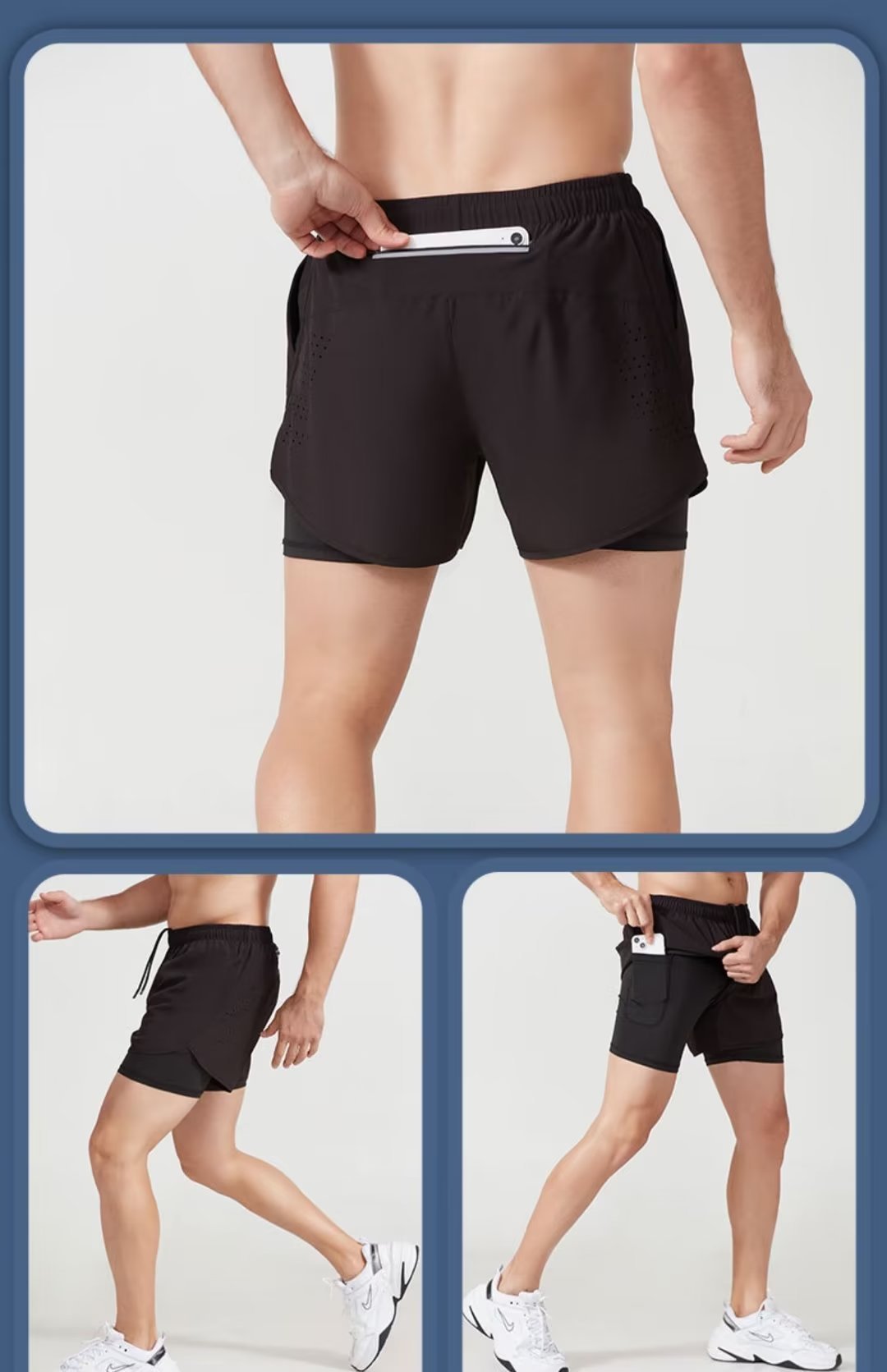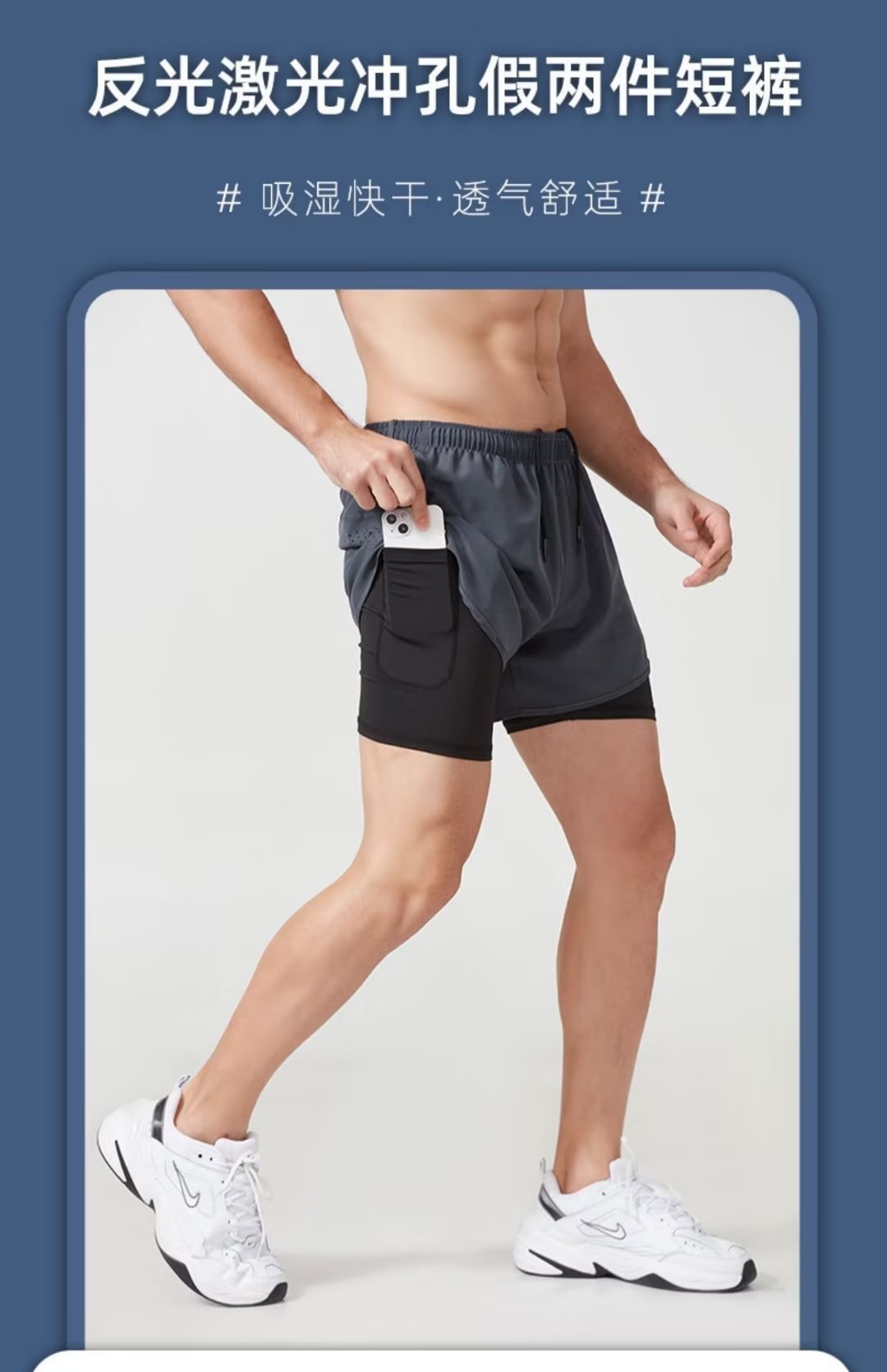 「二合一款!可放手机」跑步短裤 男专业马拉松短裤 田径三分裤内衬裤子运动假两件运动服饰