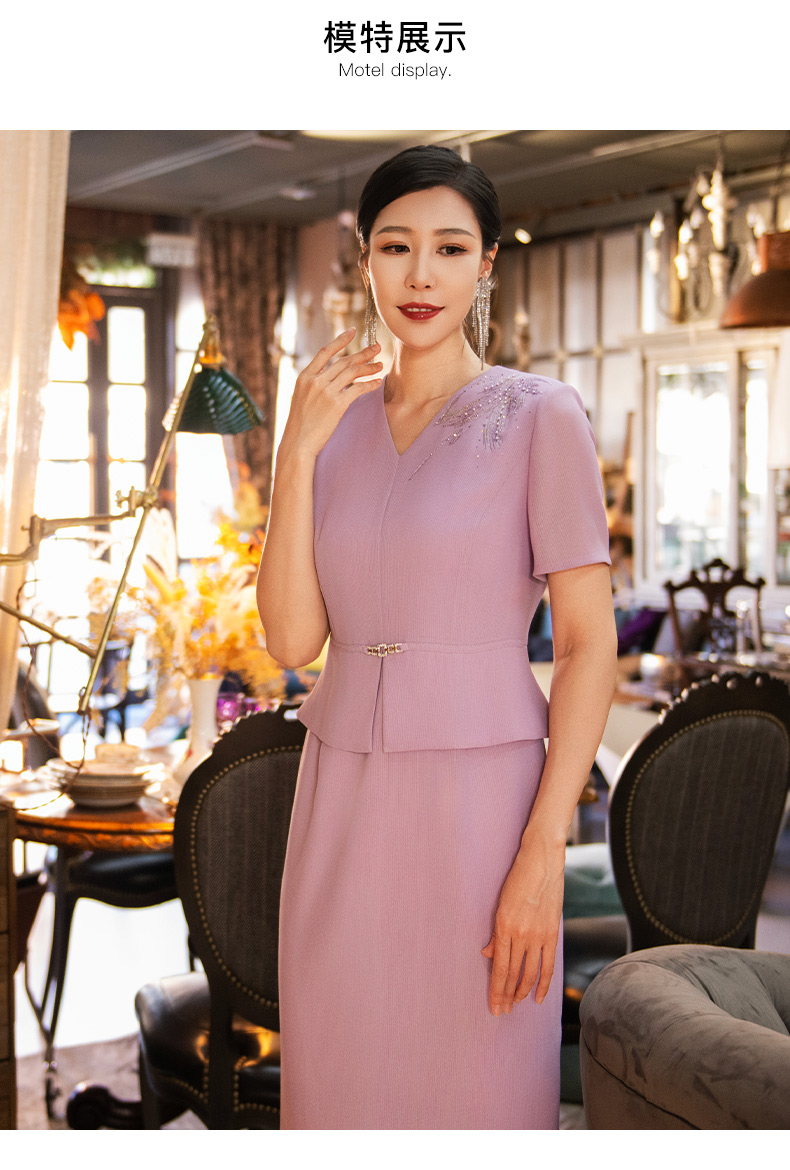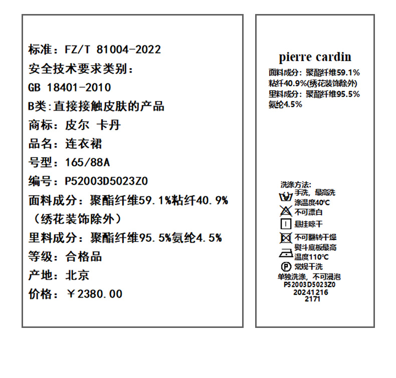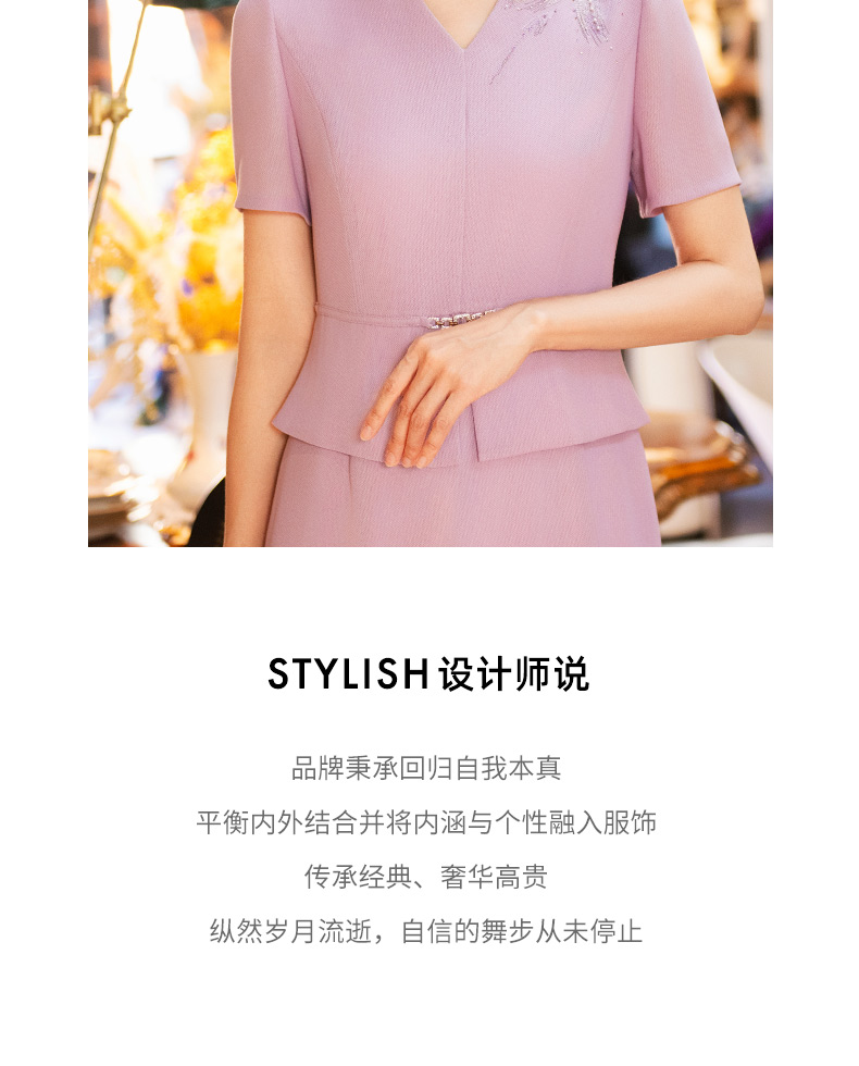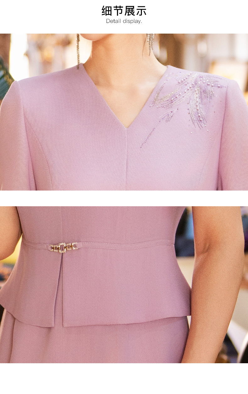 皮尔卡丹女装夏季V领粉色假两件连衣裙P52003D5023Z0