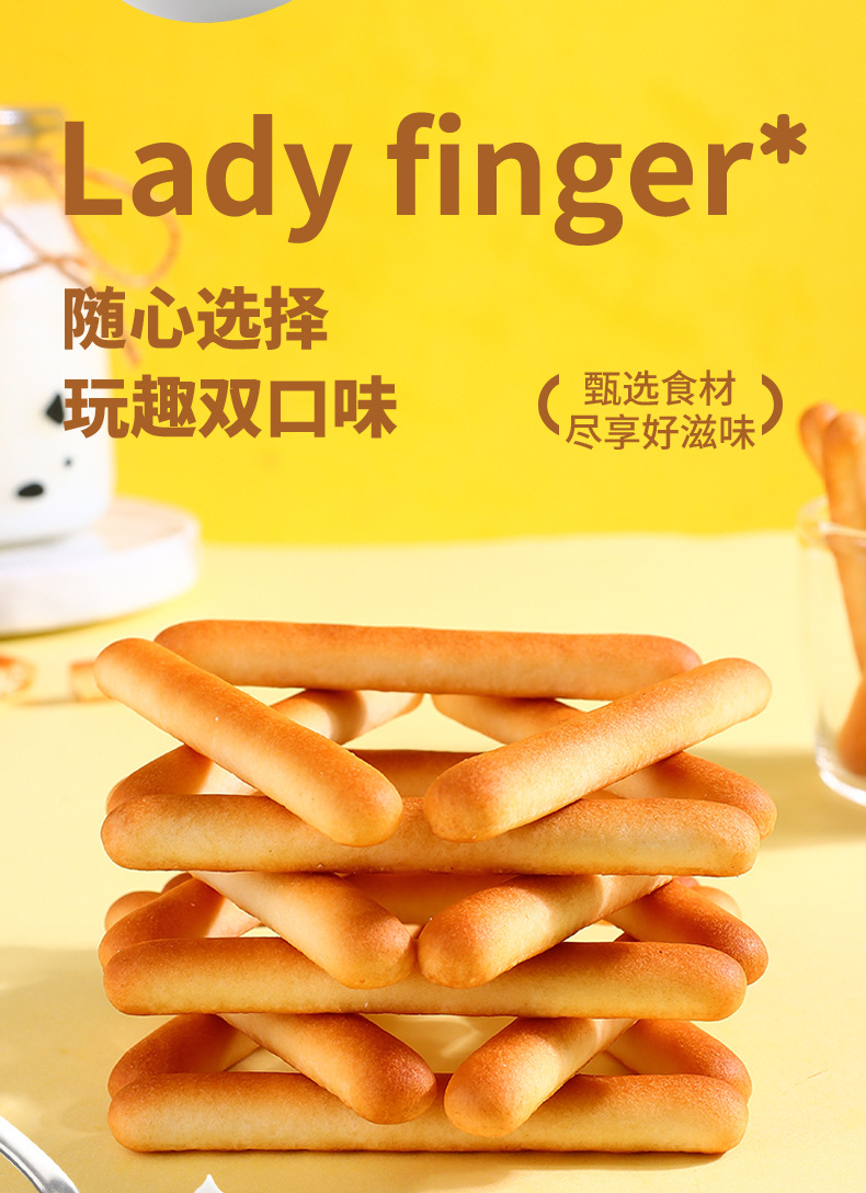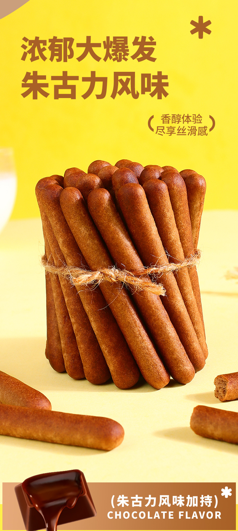 【浓郁大爆发!朱古力手指饼干】醇香奶味四溢,甄选食材,尽享好滋味,根根酥脆根本停不下来,吃营养香酥休闲怀旧零食L