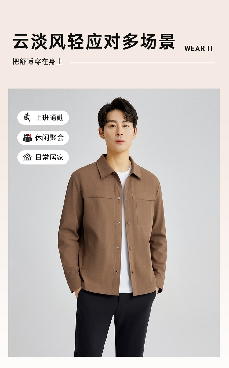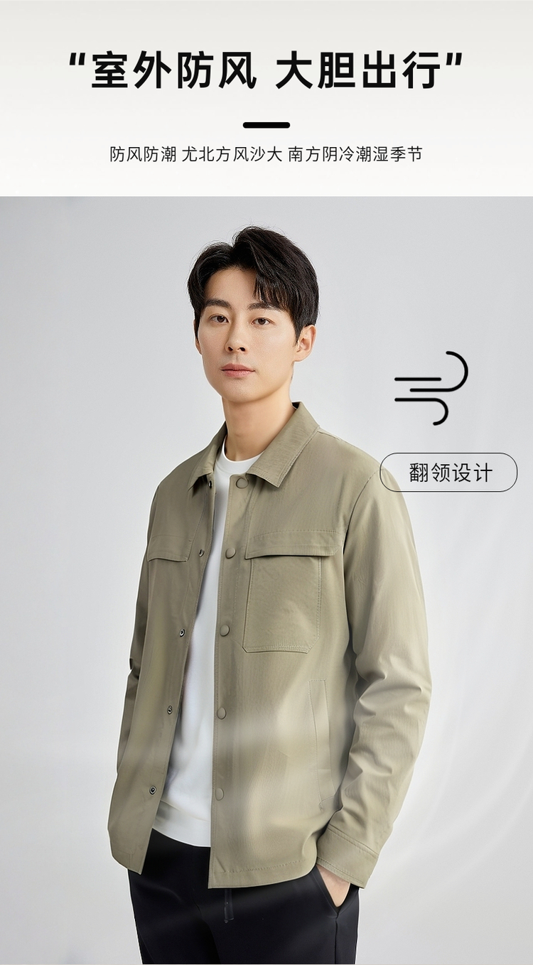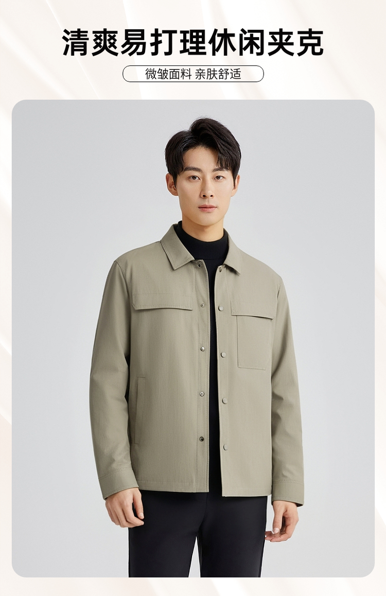圣得西时尚休闲夹克外套男士2025春秋新款简约舒适宽松百搭上衣