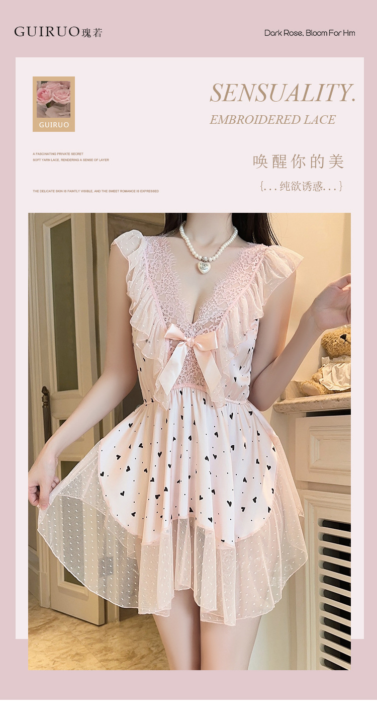 【YW】无忧购丝滑缎面甜美纯欲波点网纱蕾丝睡裙家居服5205(截单后3-5天发货)