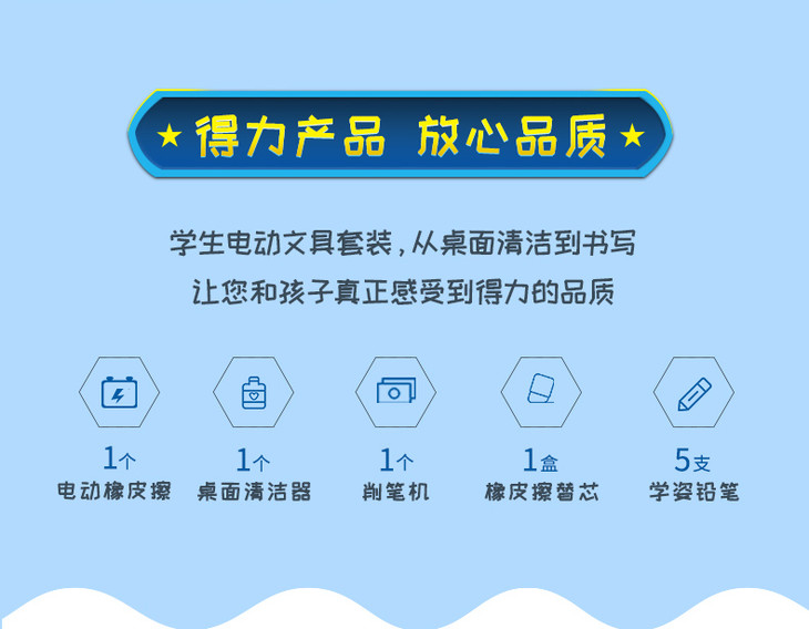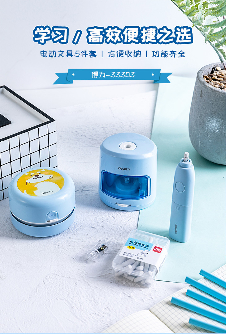 开学季福利!【电动5件套,学习小帮手】得力卷笔刀削笔器旋转刨笔器绞笔刀学姿笔正姿铅笔多功能全自动充电橡皮擦迷你桌面吸尘器五件套装幼儿园中小学生神器小型文具礼盒开学礼物