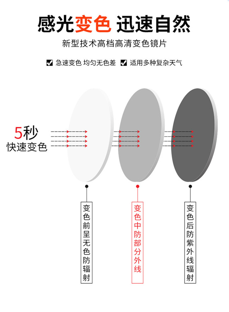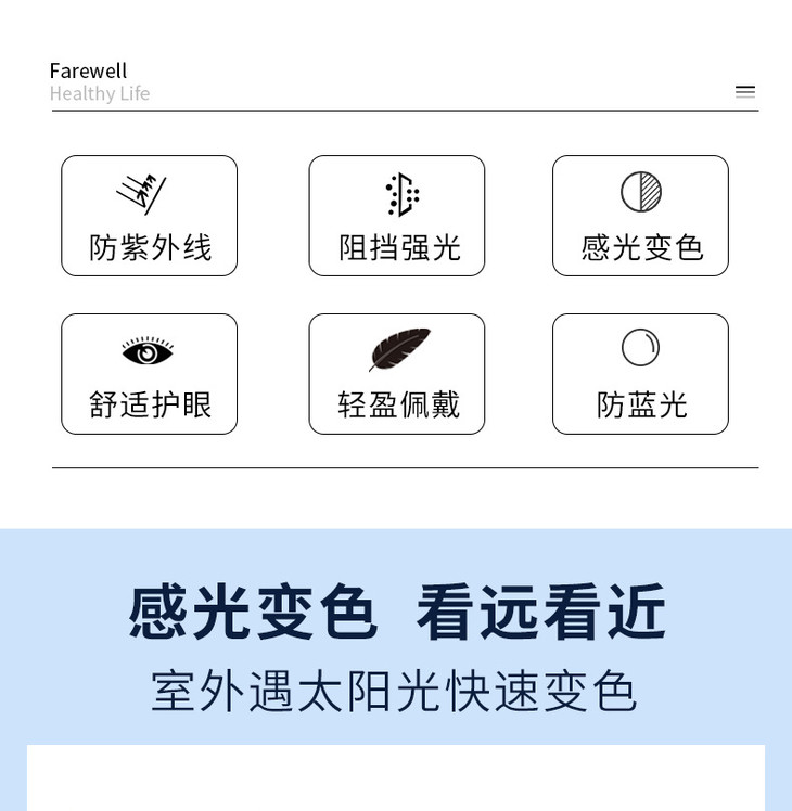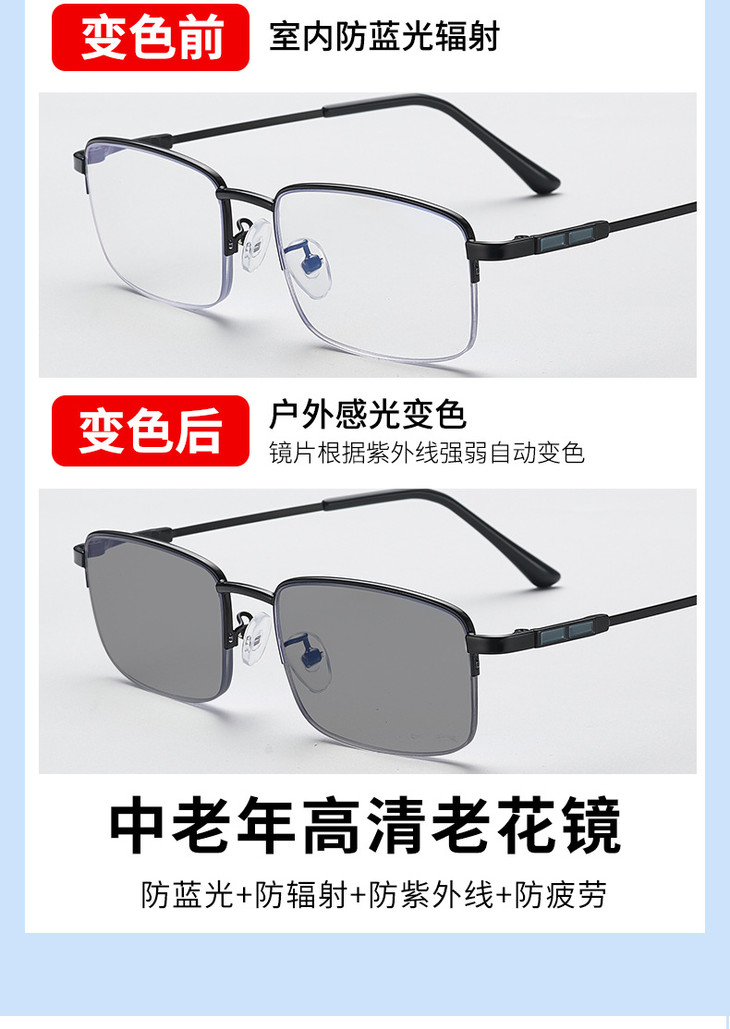 防蓝光辐射智能感光变色远近中三用多焦点渐进老花镜