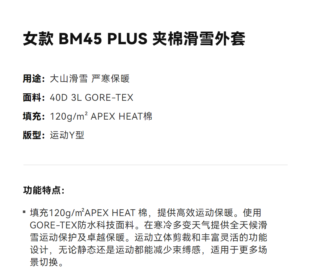 KAILAS凯乐石 女款 BM45 PLUS 夹棉滑雪外套 KG2541241