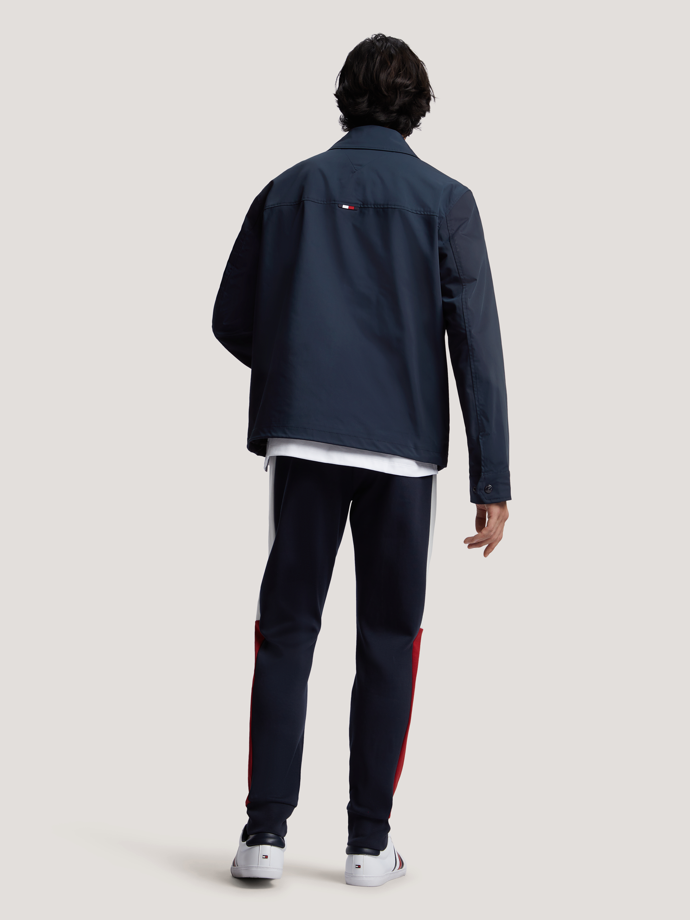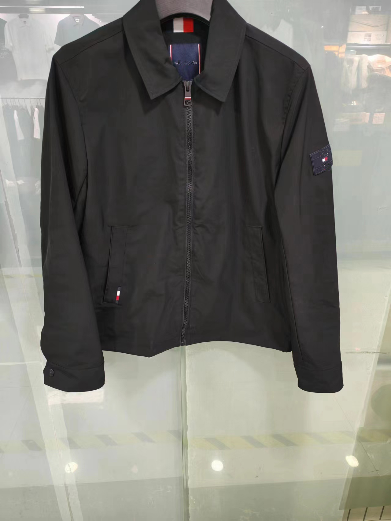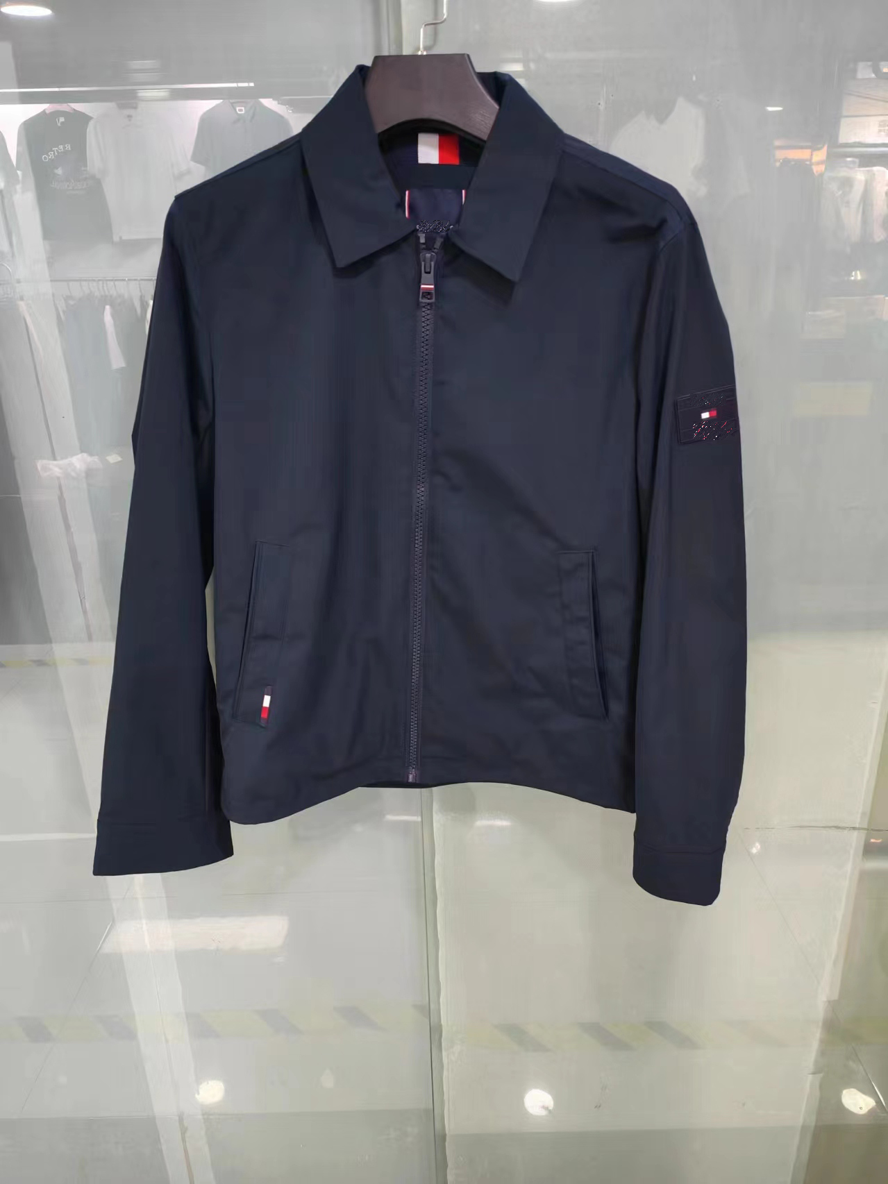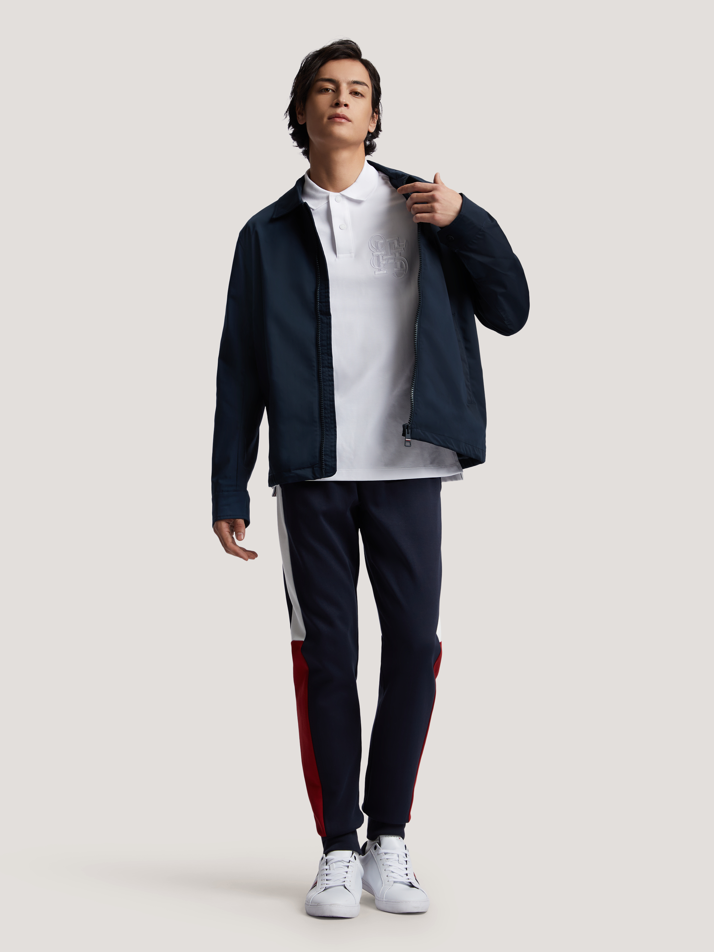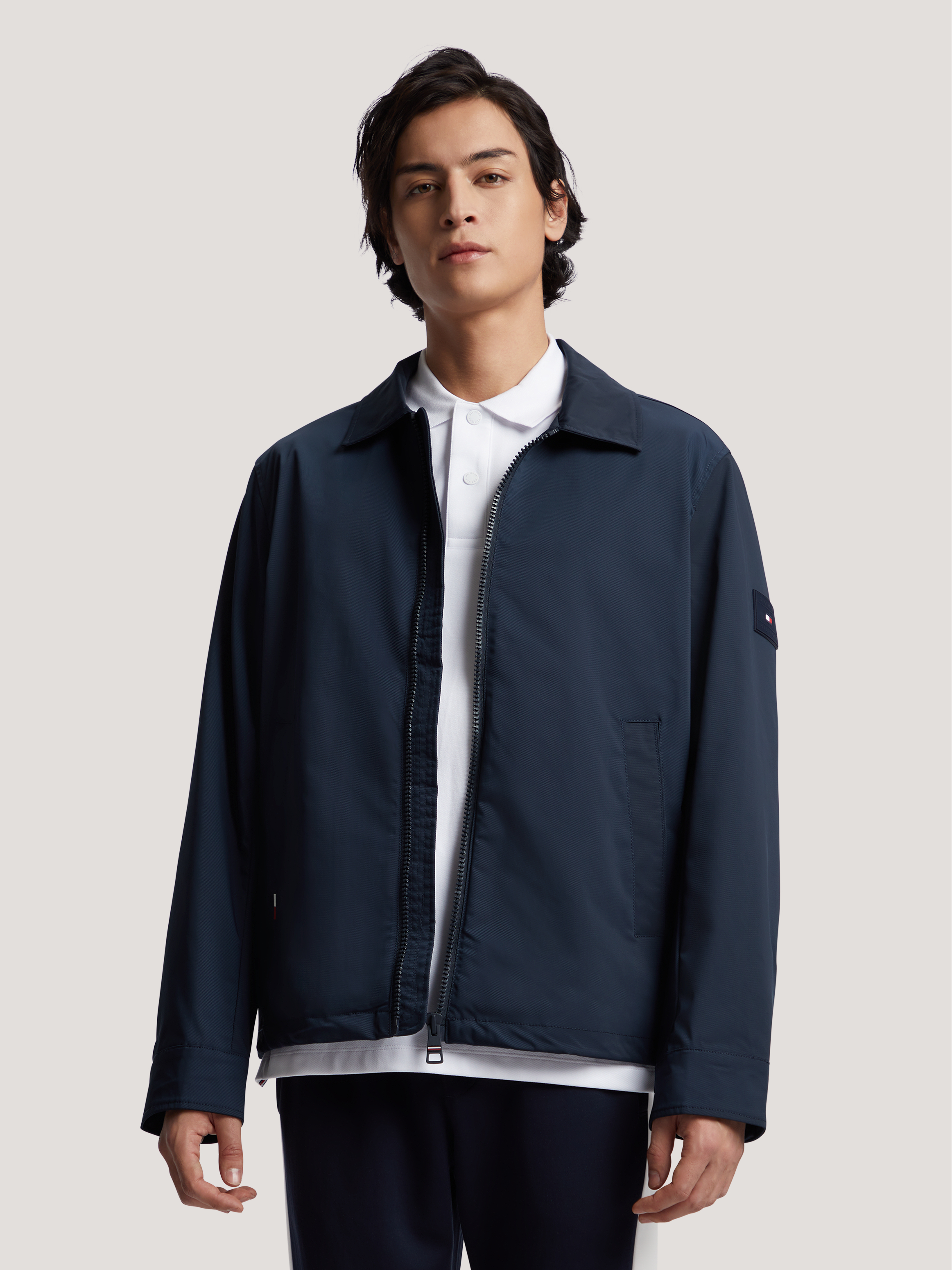 美式简洁的线条和同色系的品牌装饰使这款 夹克成为低调造型的首选单品。