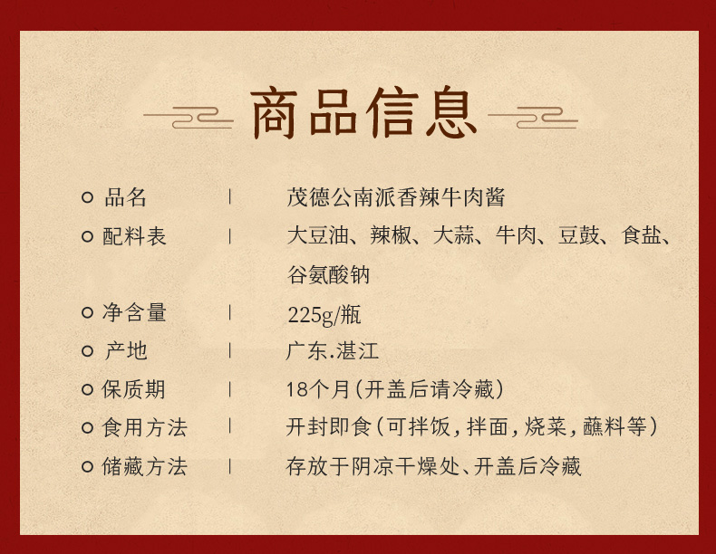 - 茂德公华南知名品牌,匠心之精心制作,保证产品品质及用户口碑;经营有:香辣酱、白酒、休闲零食、当地特产。