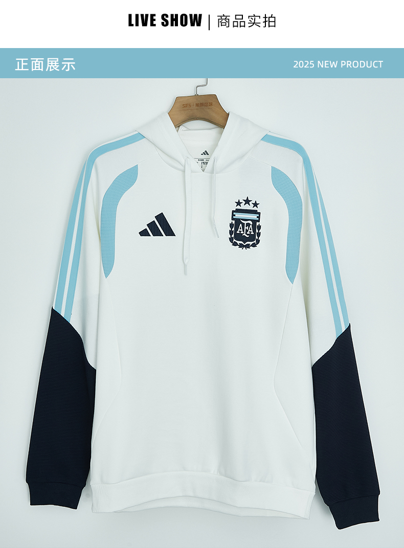 SFS阿迪达斯2026世界杯阿根廷连帽外套冬季训练长袖卫衣男JY7020