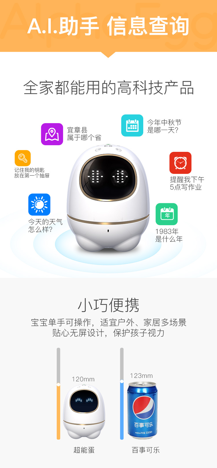 科大讯飞iFLYTEK 阿尔法超能蛋智能机器人儿童教育学习同步小学初中教材早教机陪伴益智玩具