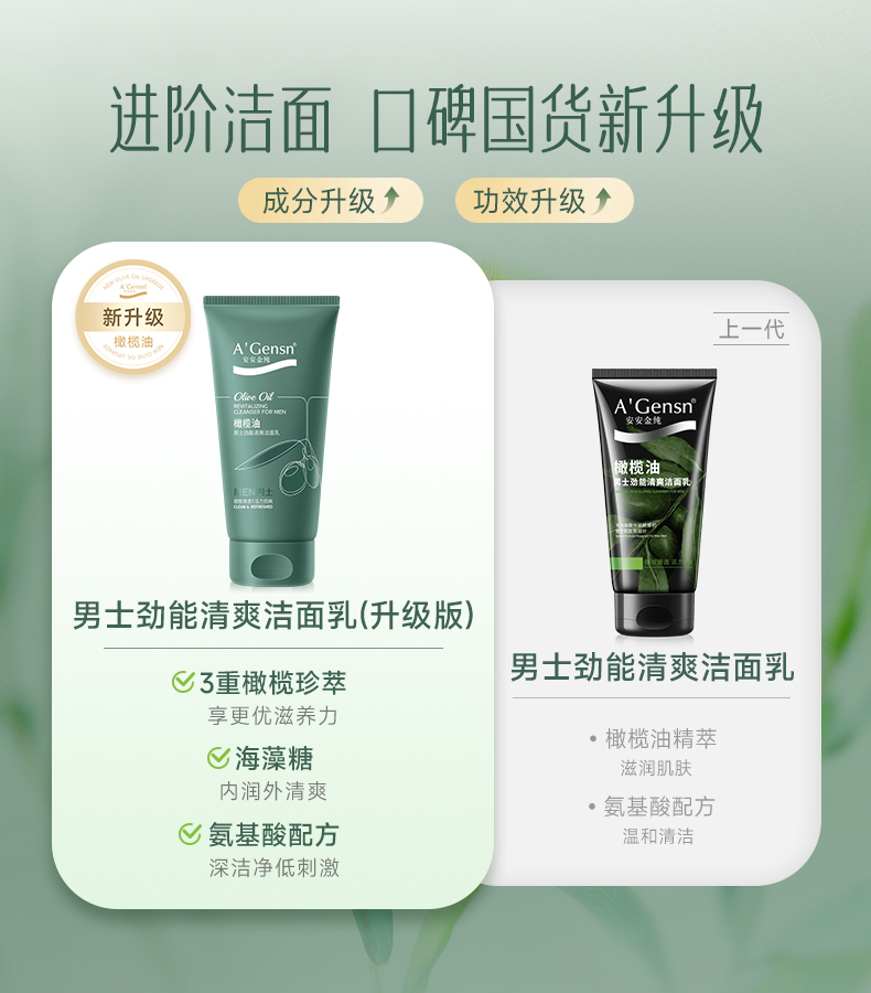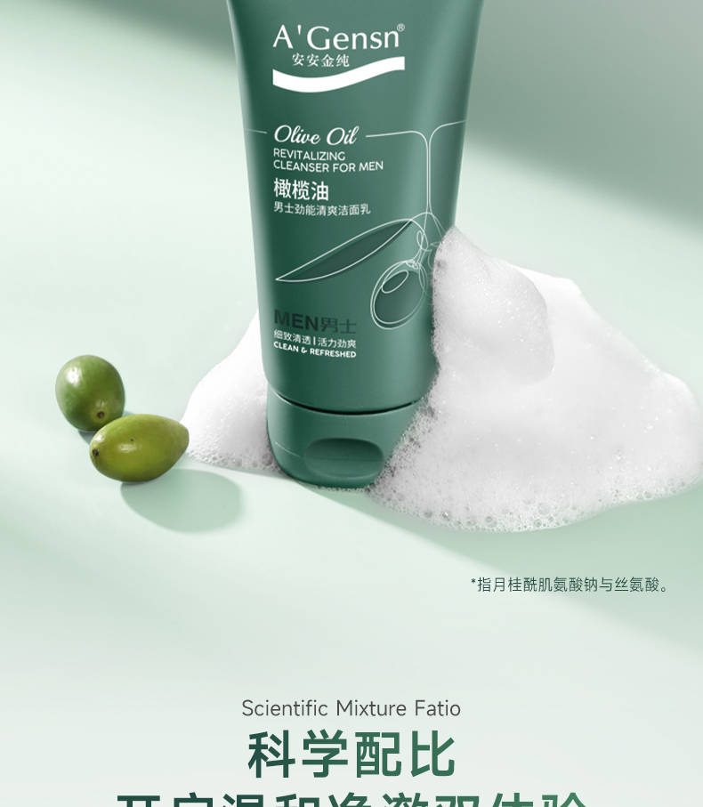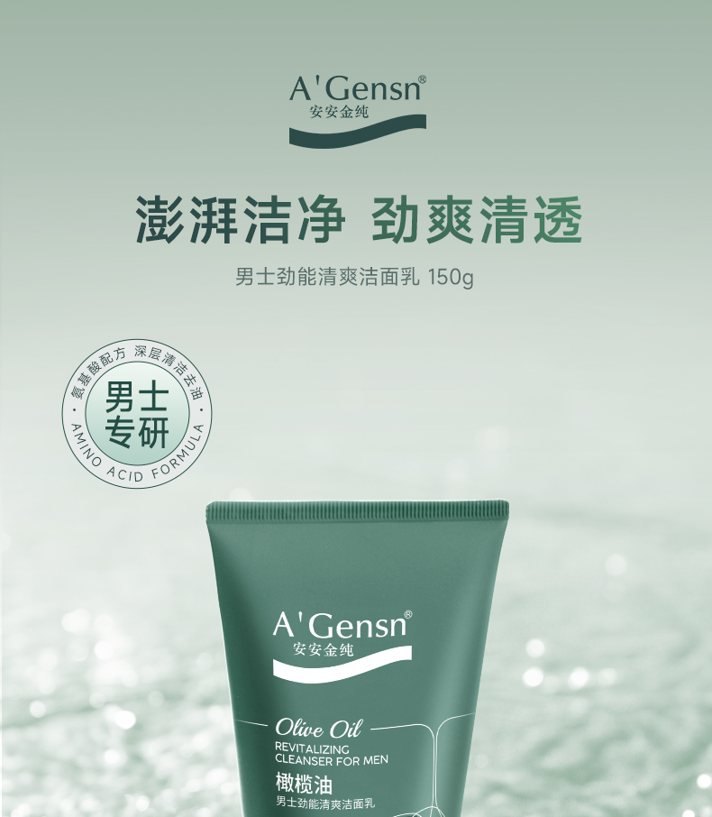 安安金纯橄榄油男士劲能清爽洁面乳150g