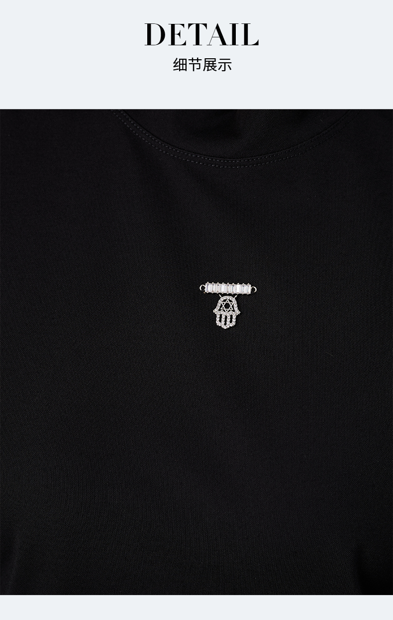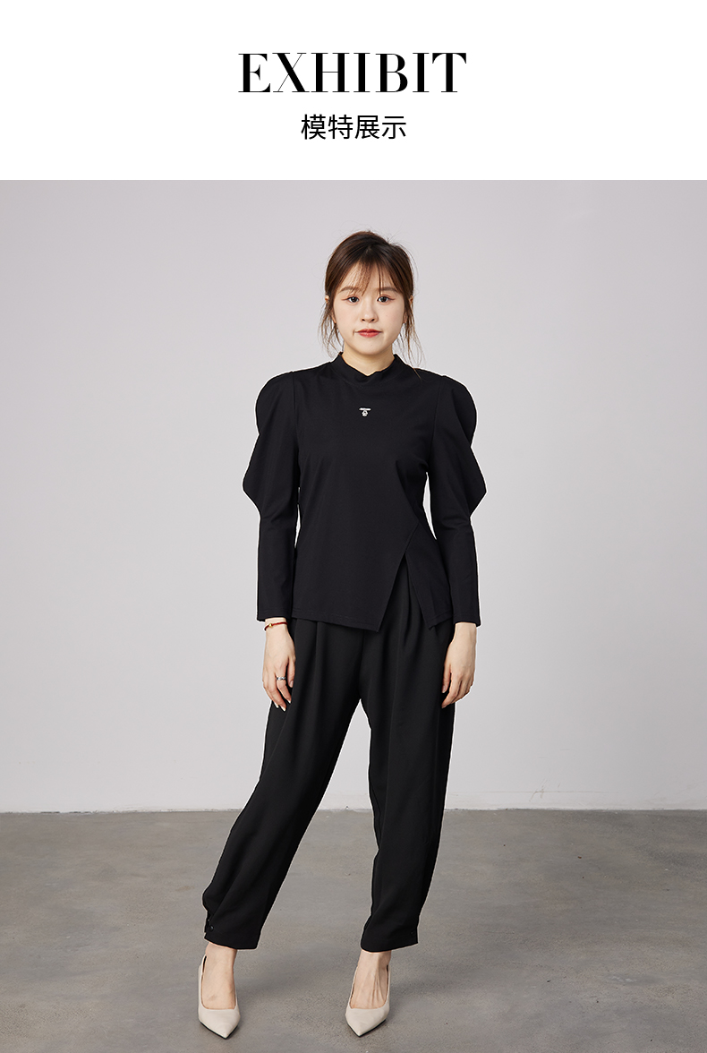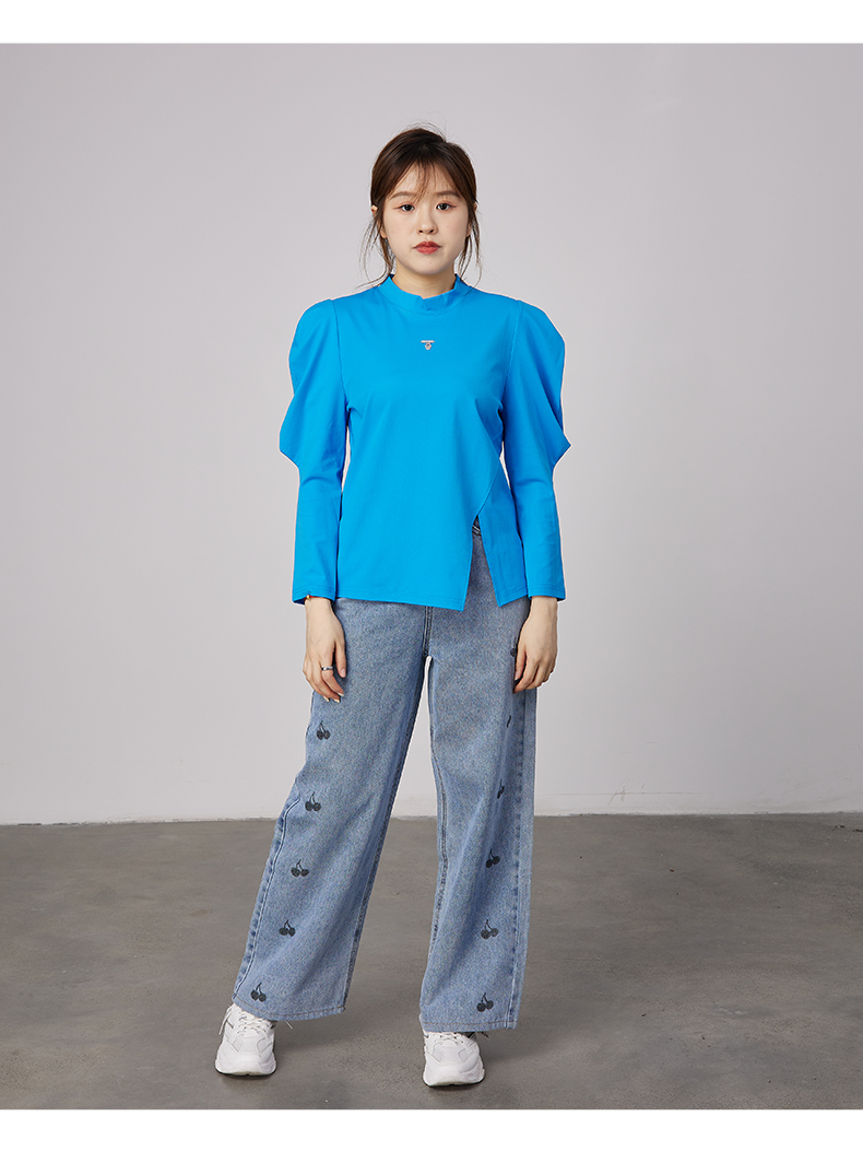 oldcolour2021秋商场同款气质修身泡泡袖拼接款T恤女N33023304