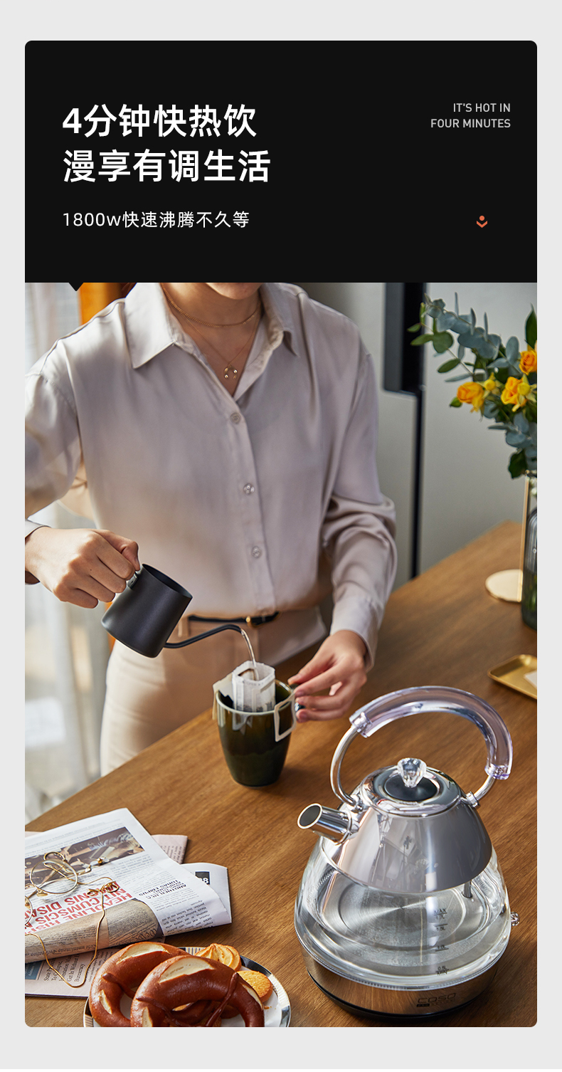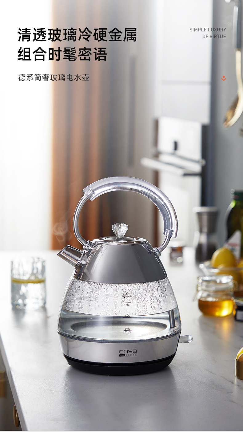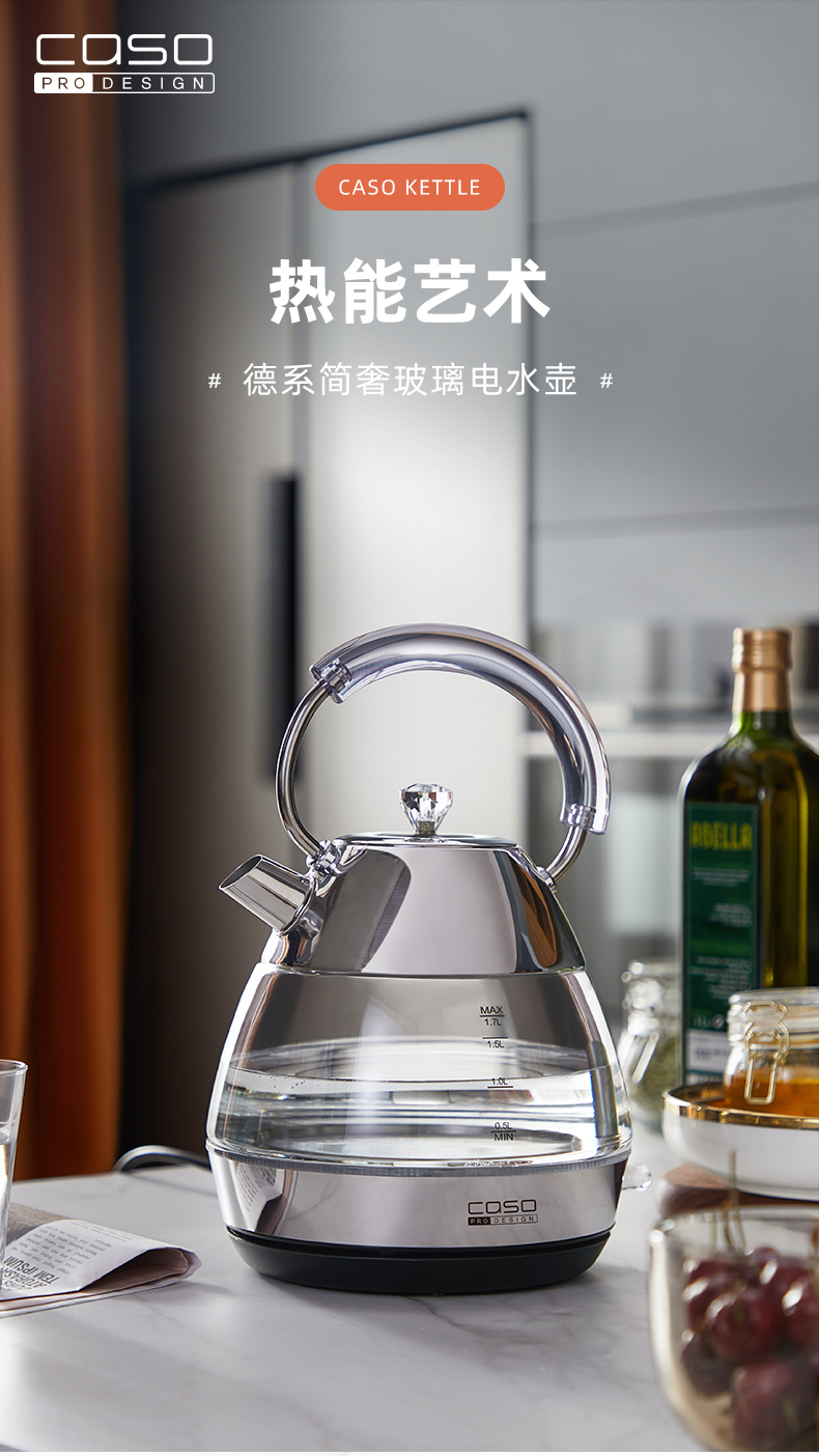 CASO卡梭玻璃电热水壶家用全自动烧水壶开水茶壶热水壶养生壶