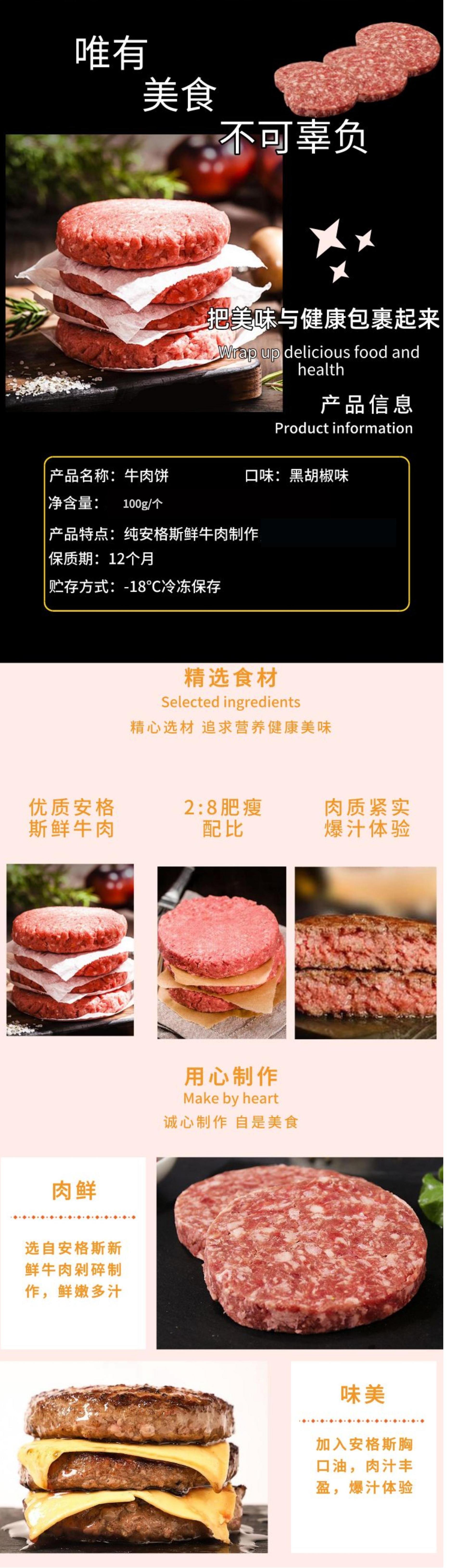 【顺丰发货】安格斯黑胡椒牛肉饼100g/个 肥瘦搭配的丰盈口感 原汁原味 肉香浓郁