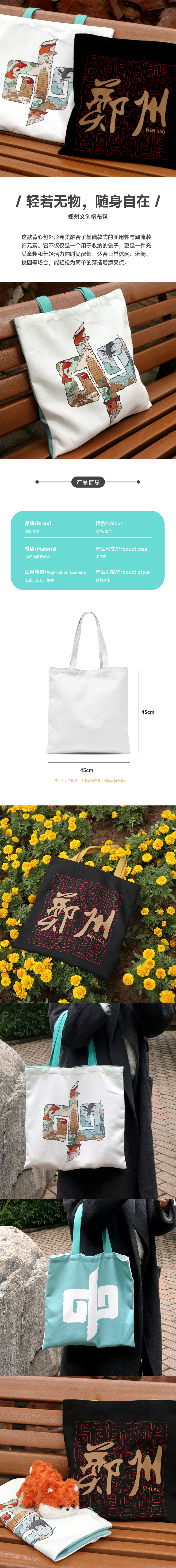 【地铁礼物】郑州地铁文创帆布包/郑州&中字插画帆布包