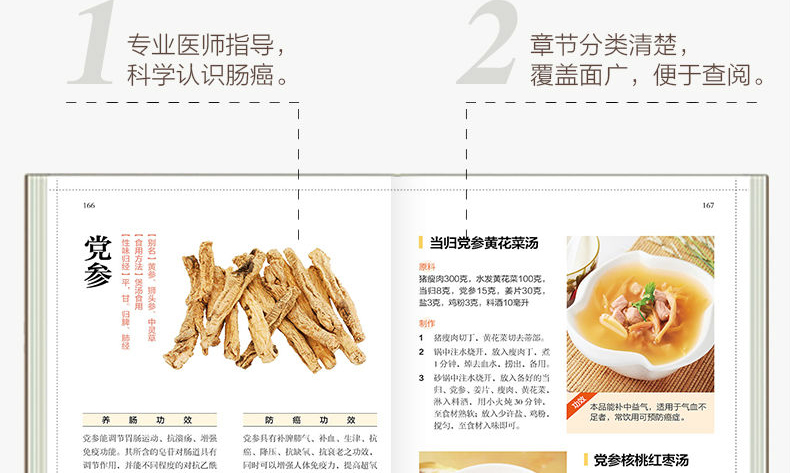 | 胡维勤主编的《学会吃快速调理肠癌(精)》从基础的肠癌知识出发,细分章节讲述肠癌的种类、肠癌的饮食调养、肠癌的运动调养等,让读者能够全面、科学认识肠癌,细致做好防癌工作。书中还针对每种食材详细介绍其宜忌搭配、食用方法,充分利用天然食材和中药材的抗癌功效,精心推荐养生食谱。希望读者通过阅读本书知病因、懂预防、享健康。 |