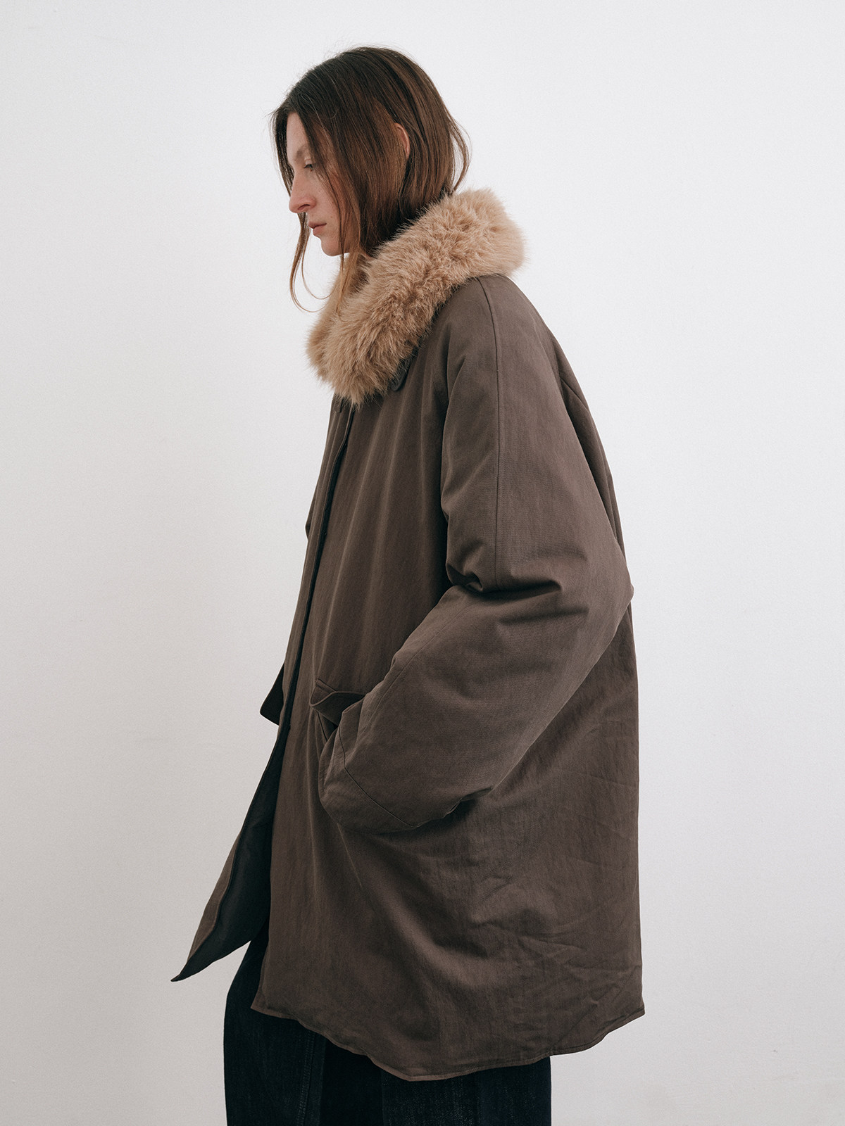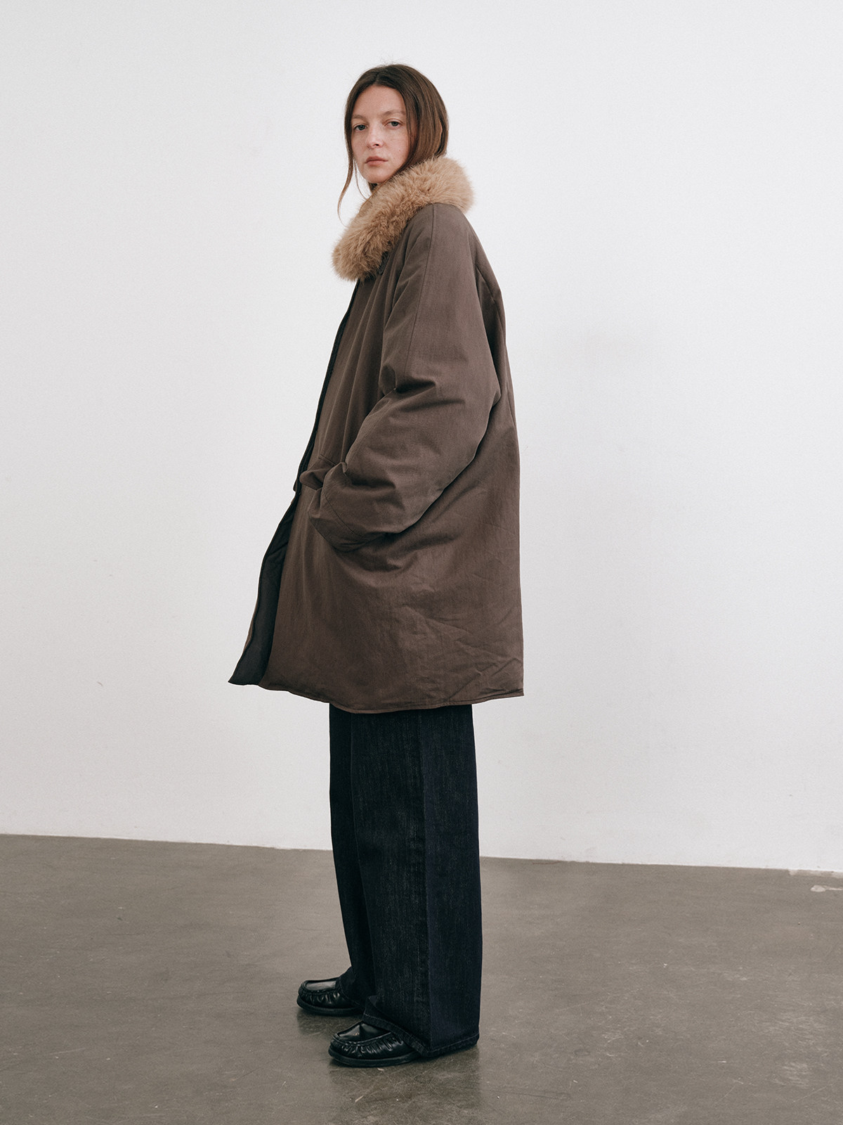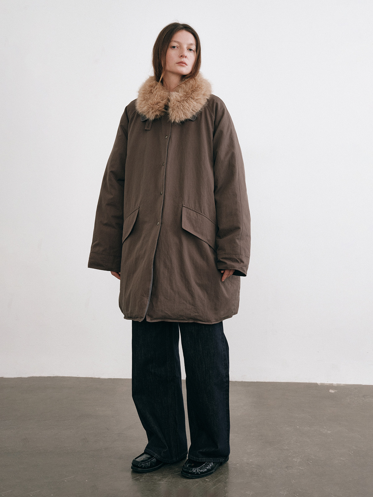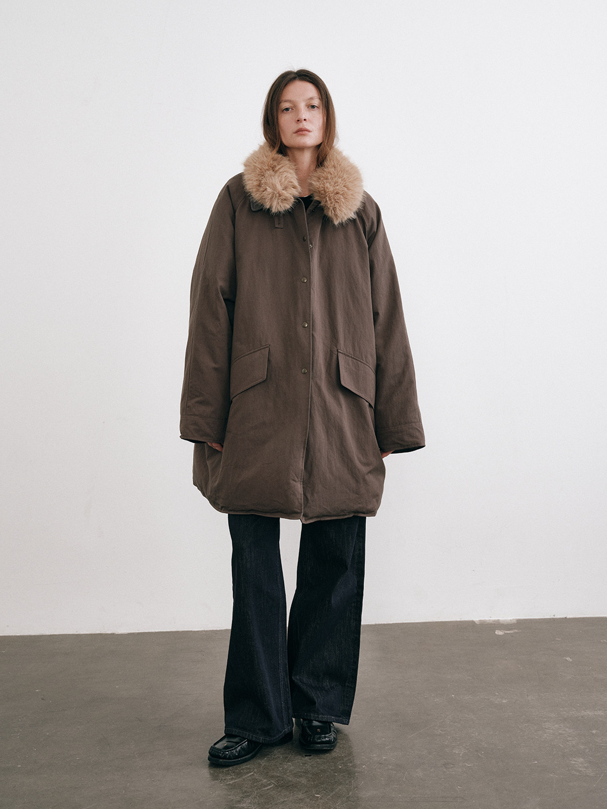 shyshystill/shy202509004/可拆卸挡风毛领中长款双色羽绒服
