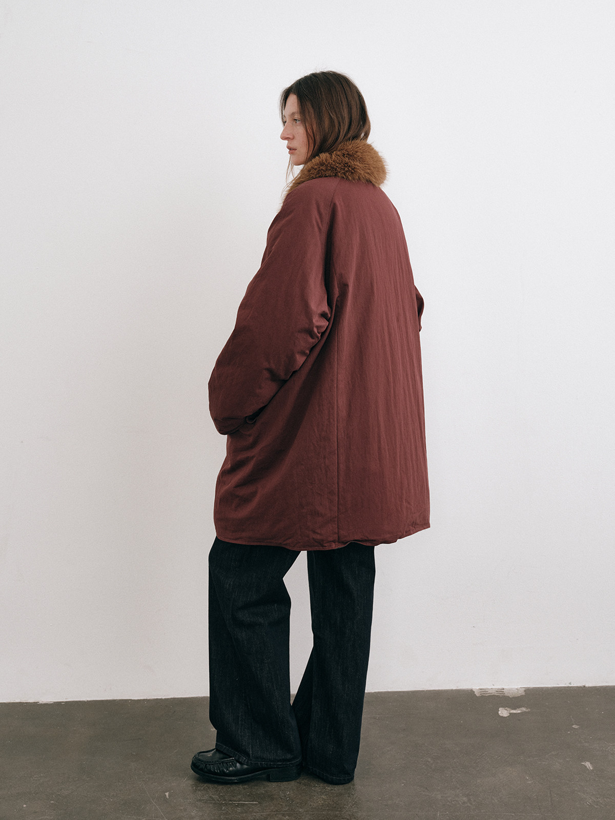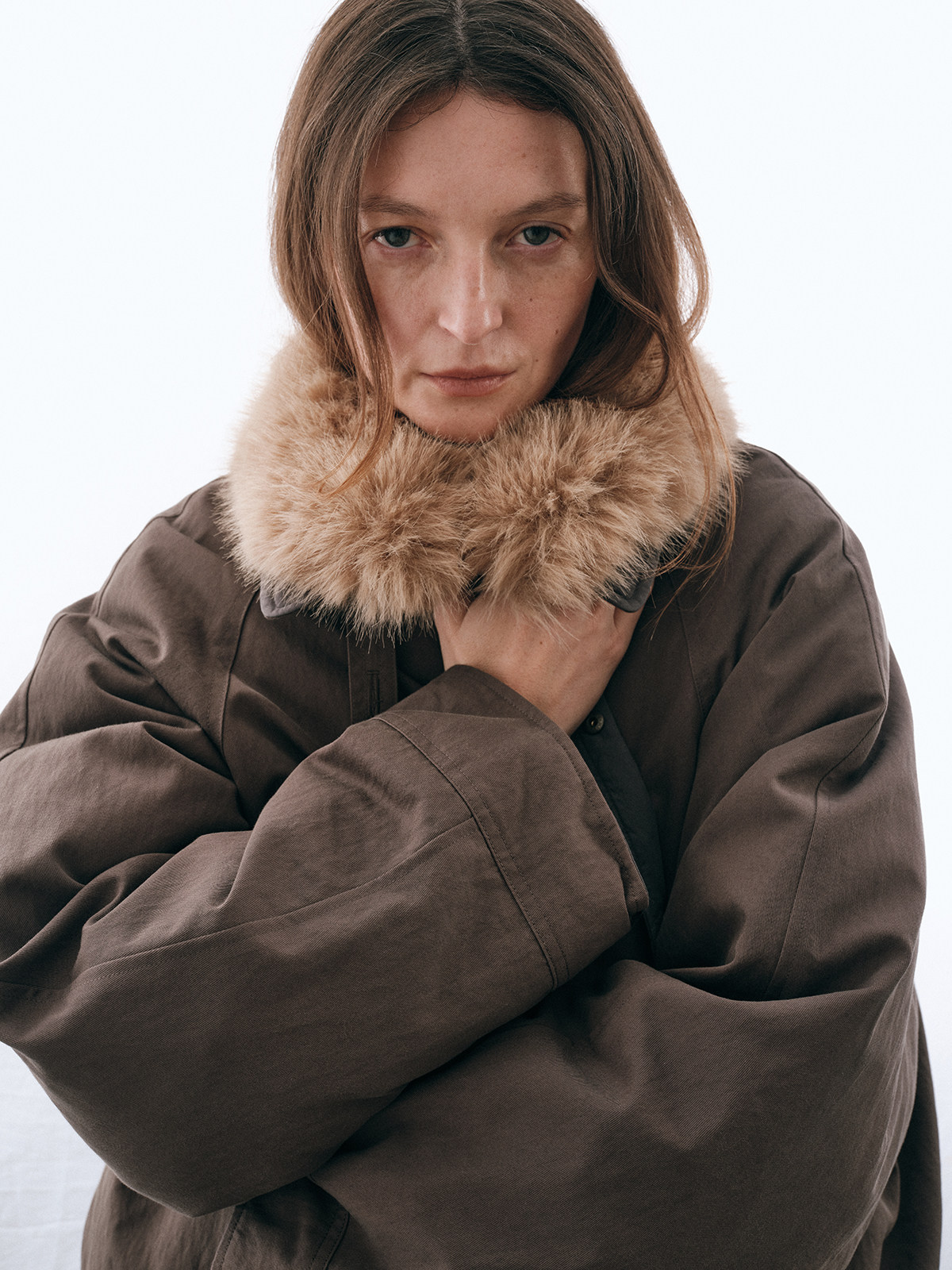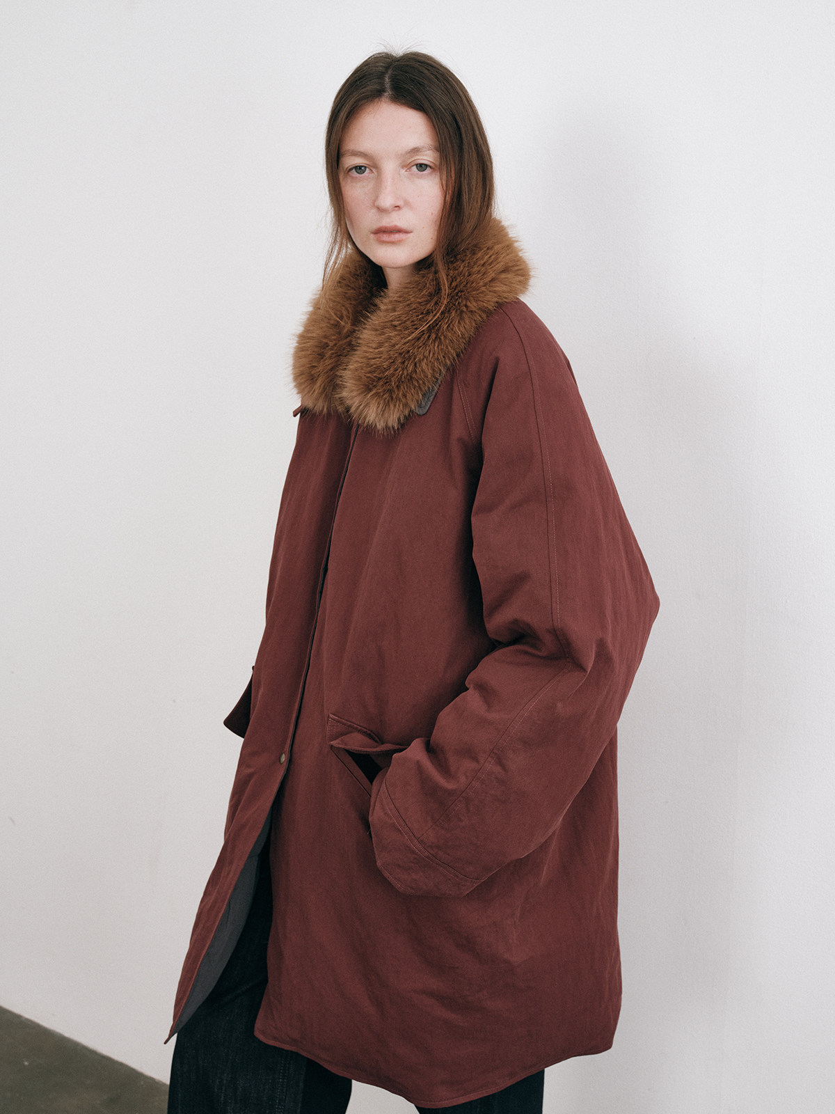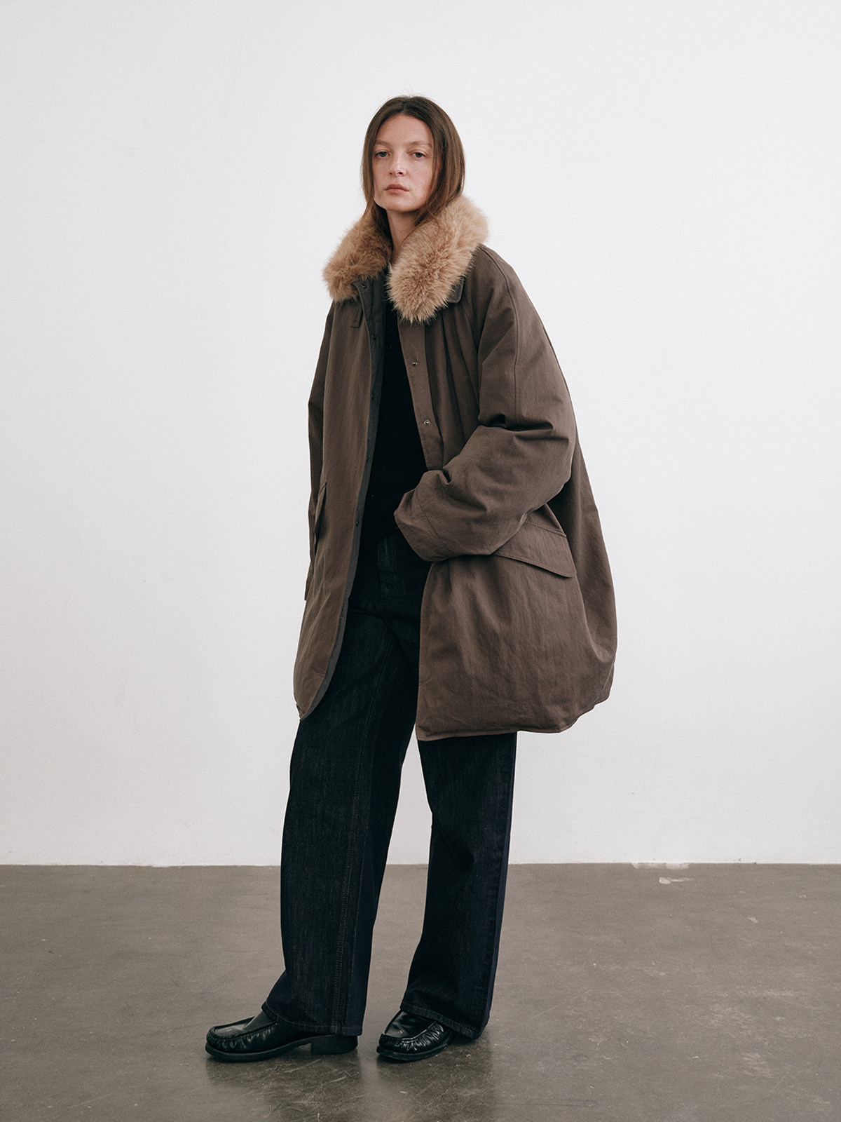 shyshystill/shy202509004/可拆卸挡风毛领中长款双色羽绒服