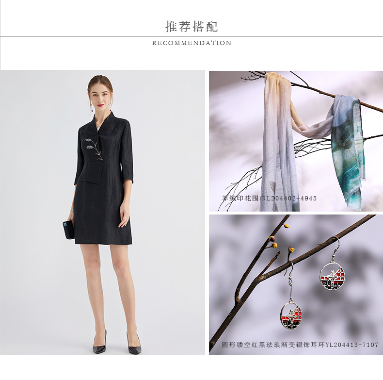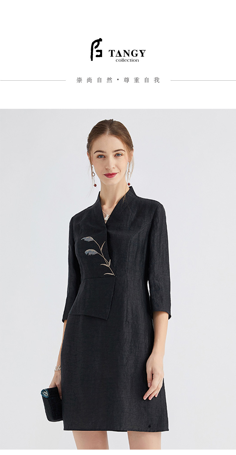 TANGY Collection /天意芦野系列莨绸绣花连衣裙