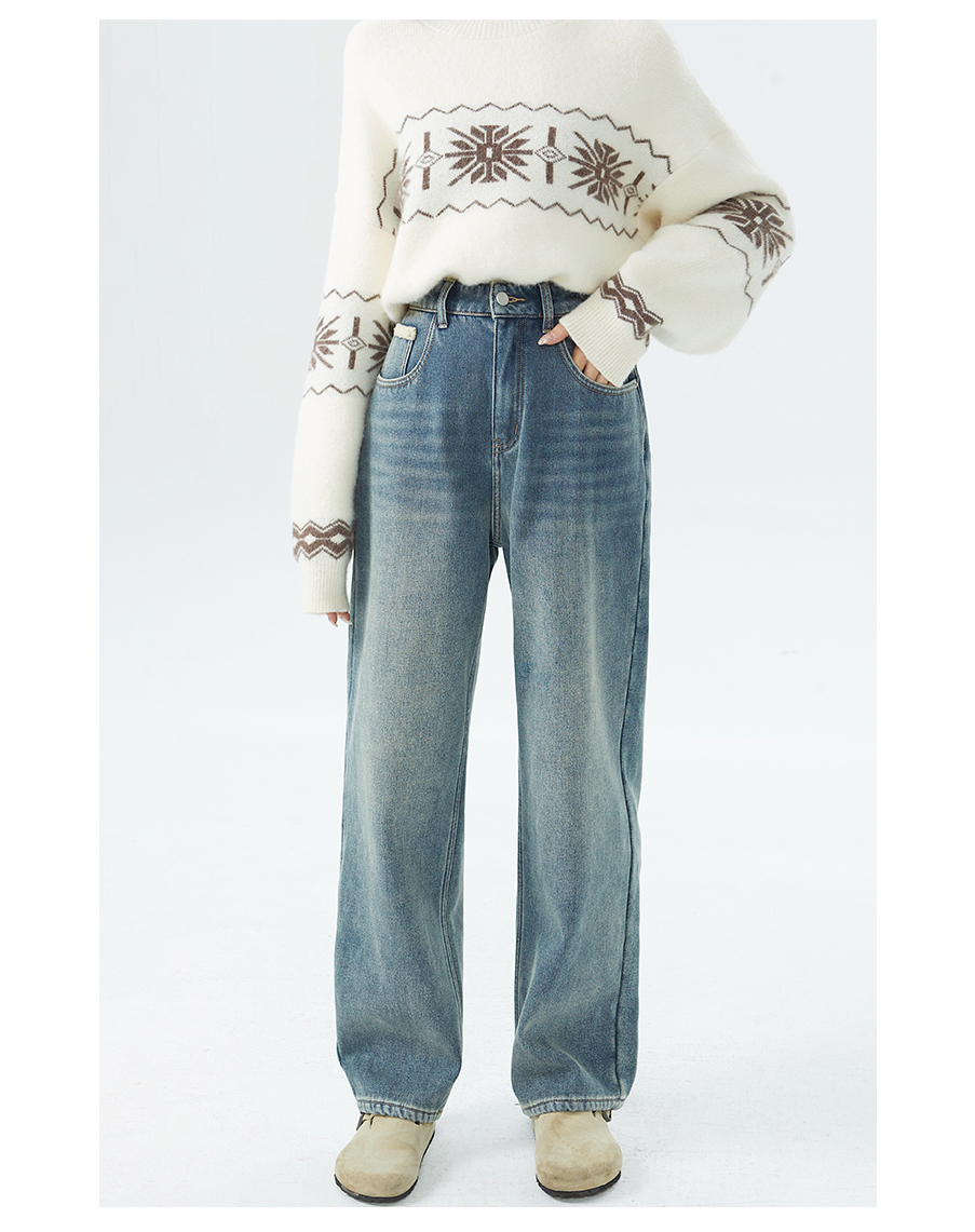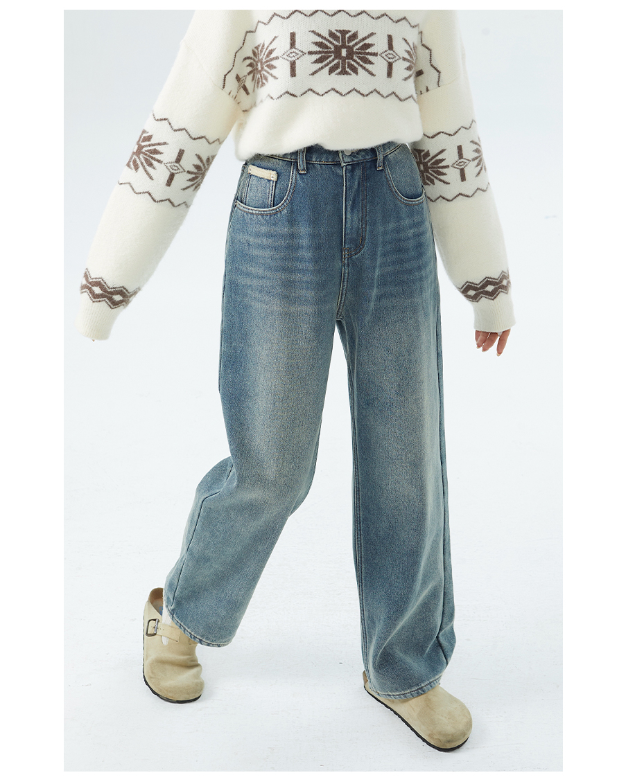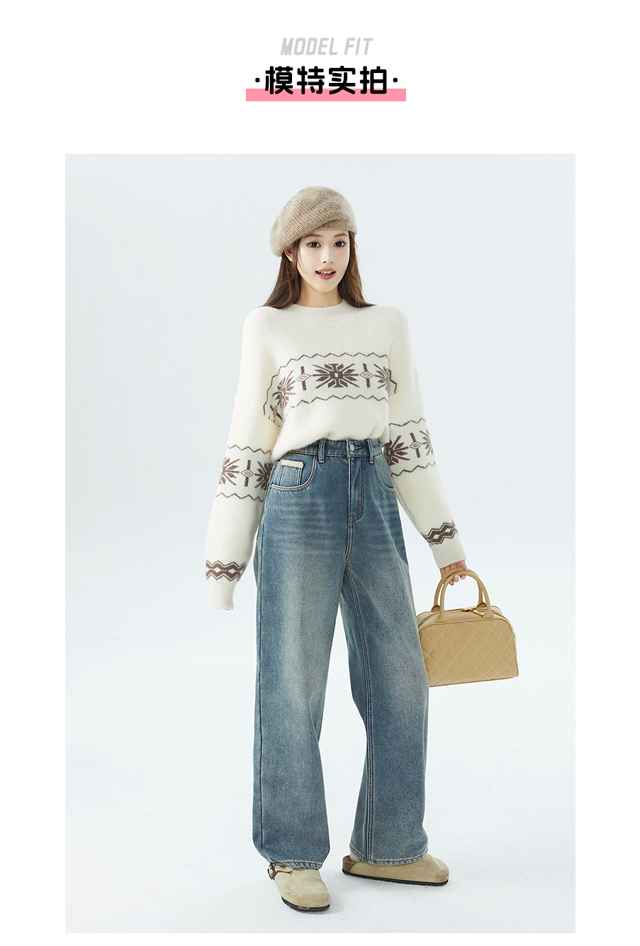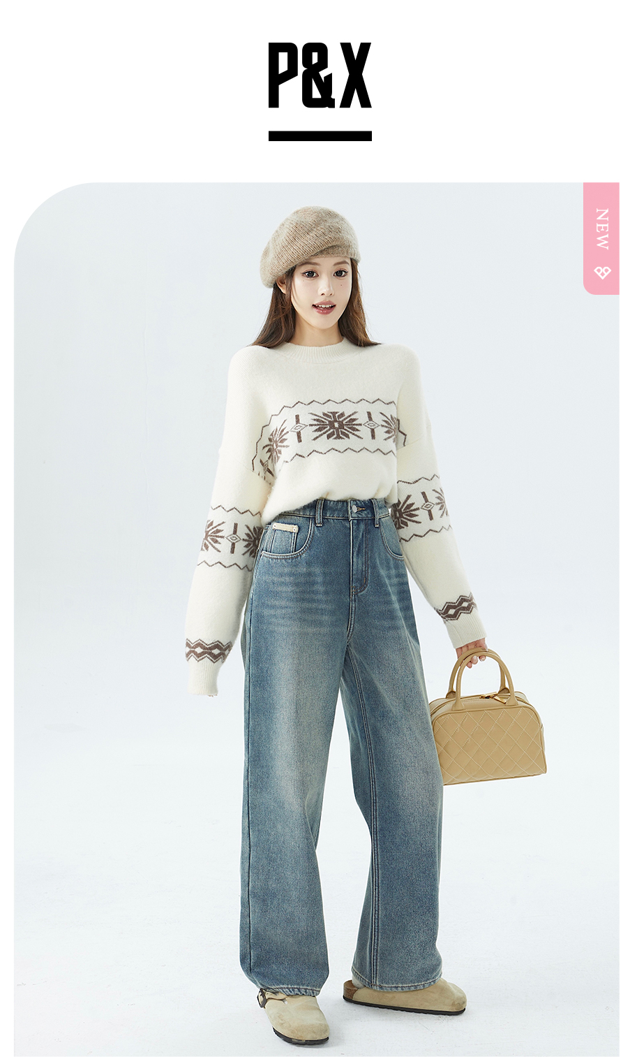 P&X设计师女装潮流宽松牛仔长裤824410119 蓝色