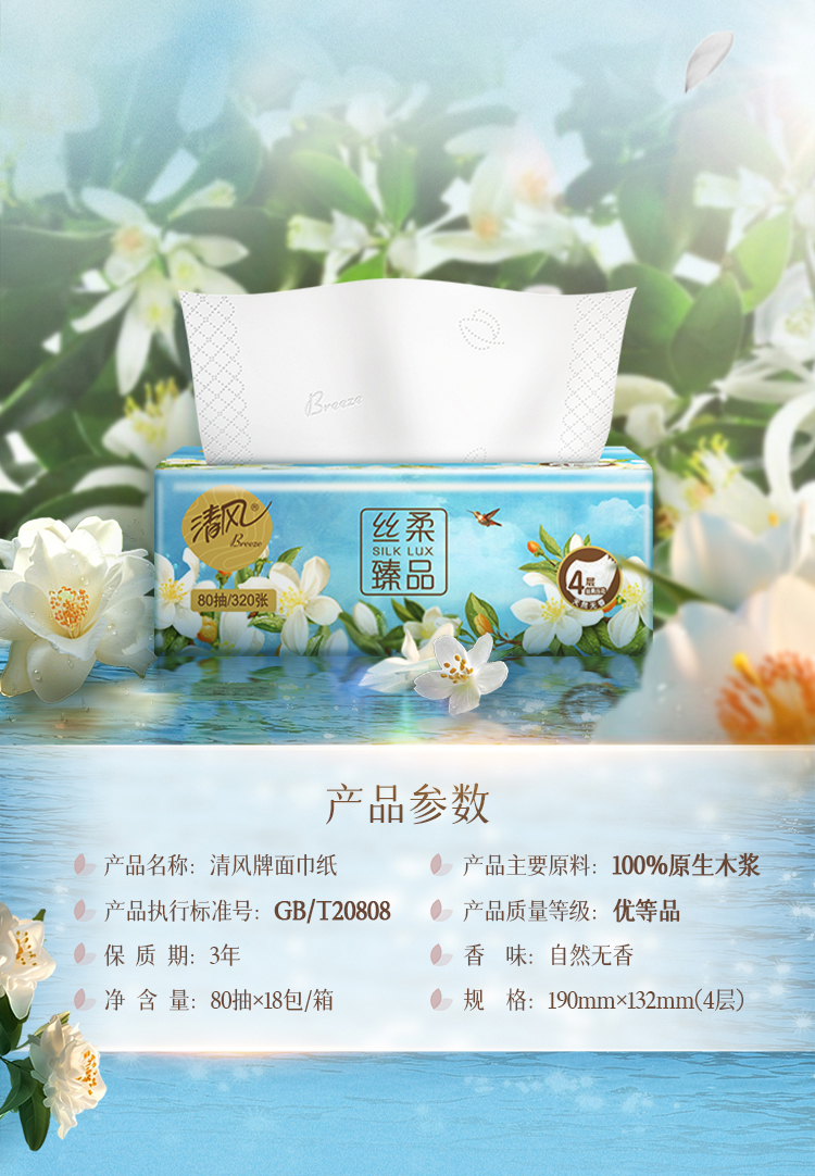 【品牌优选】清风丝柔臻品4层80抽18包抽取式面纸巾