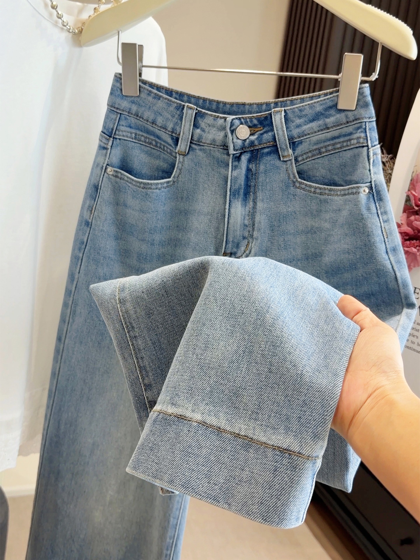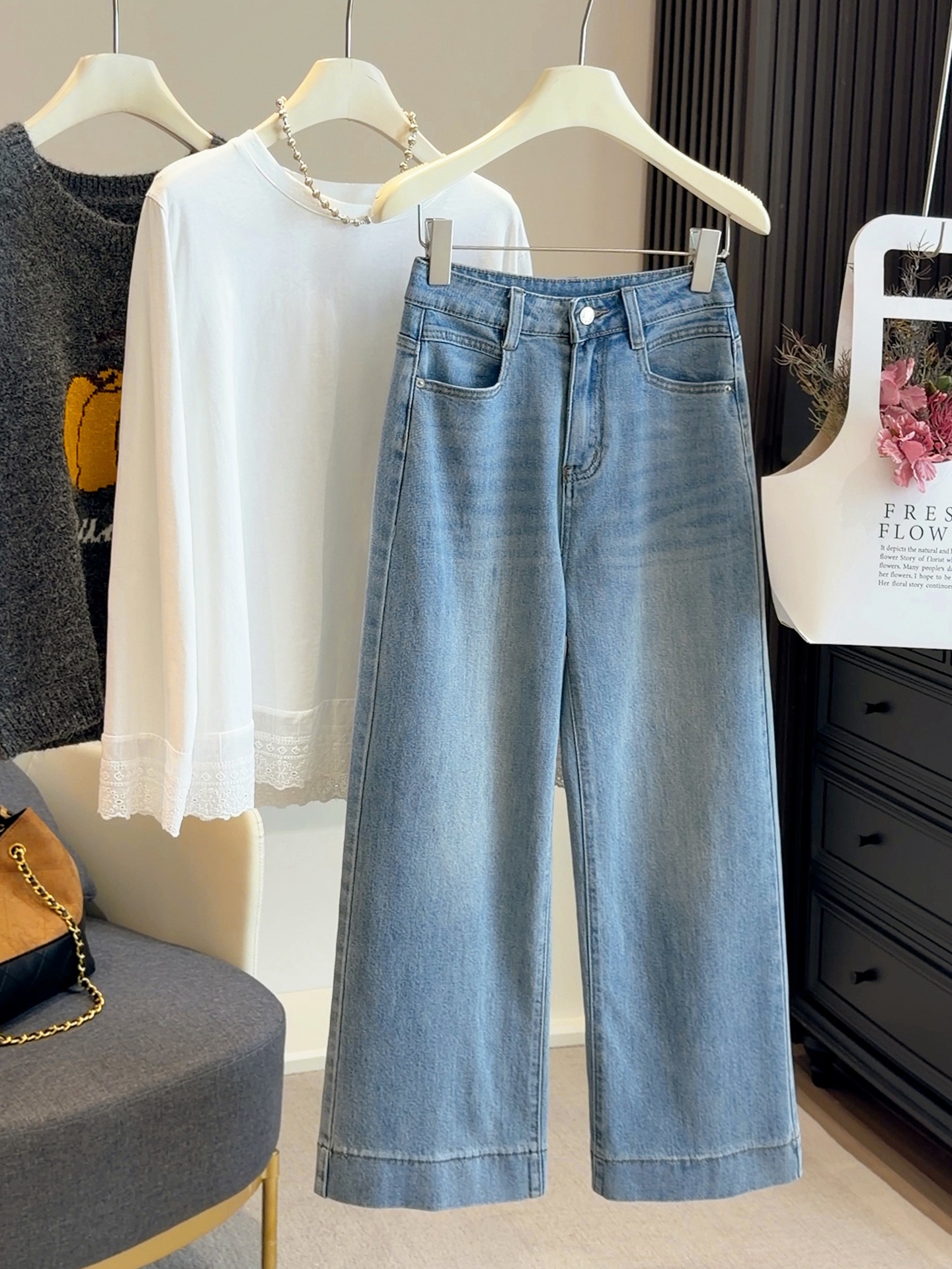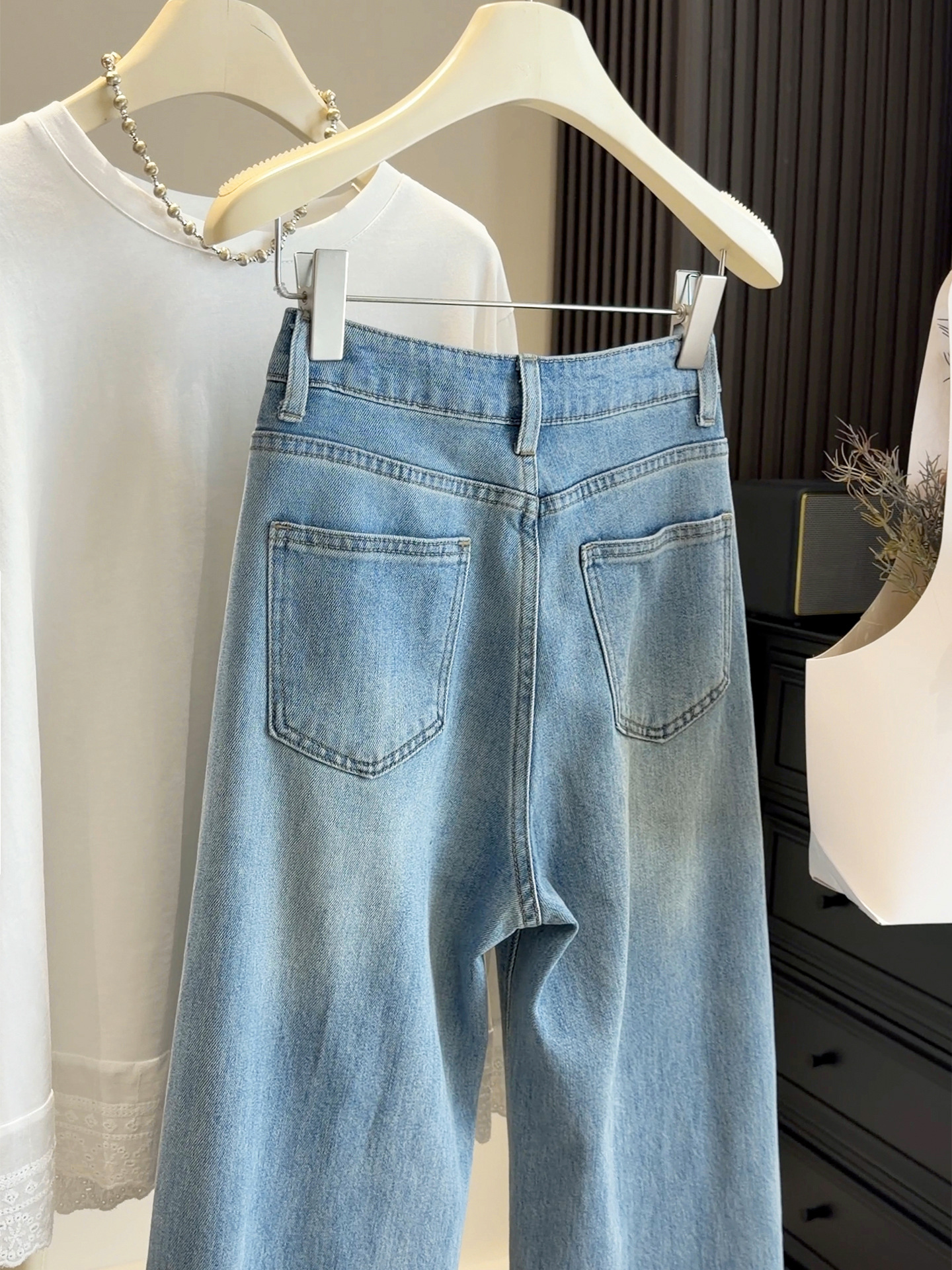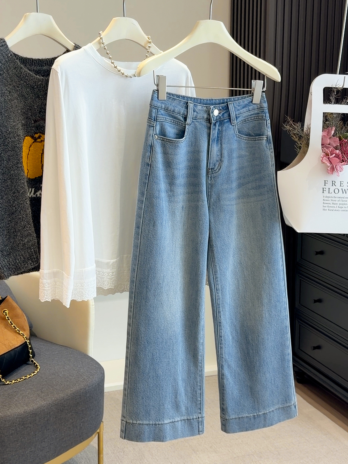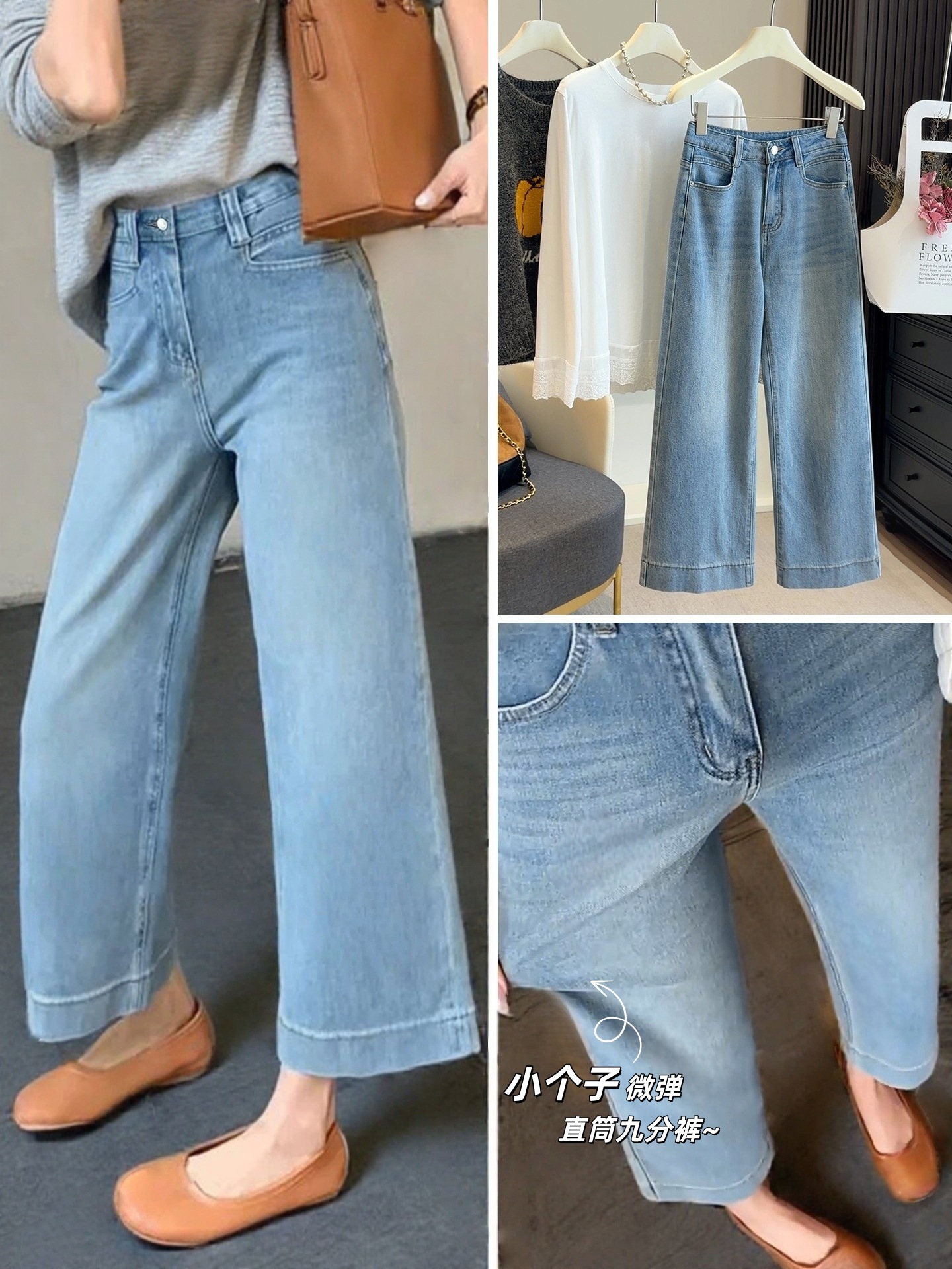小个子款【九分直筒宽边牛仔裤】春季新款 高腰显瘦百搭窄版阔腿裤