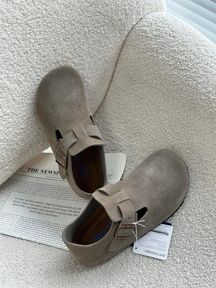 1013-13免带 健康真软木底子 高丝光牛反绒 穆勒休闲鞋 博肯拖鞋 情侣款35-44