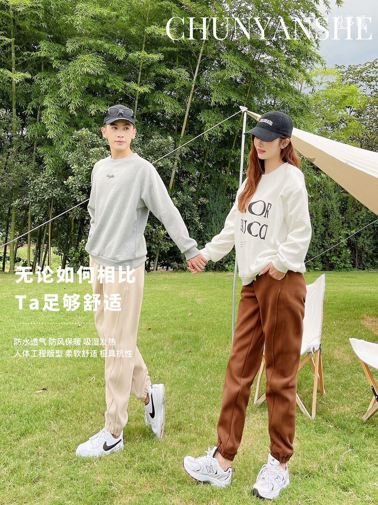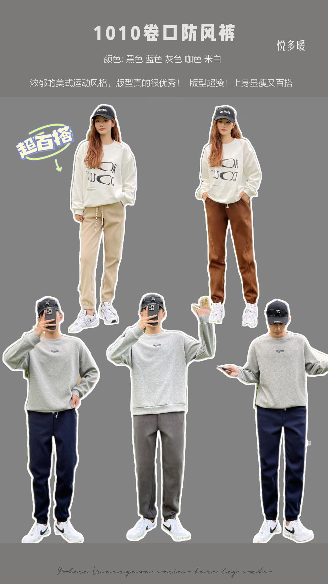 秋冬【户外情侣防风裤】加厚加绒运动休闲裤 女生收脚卫裤 外穿男裤