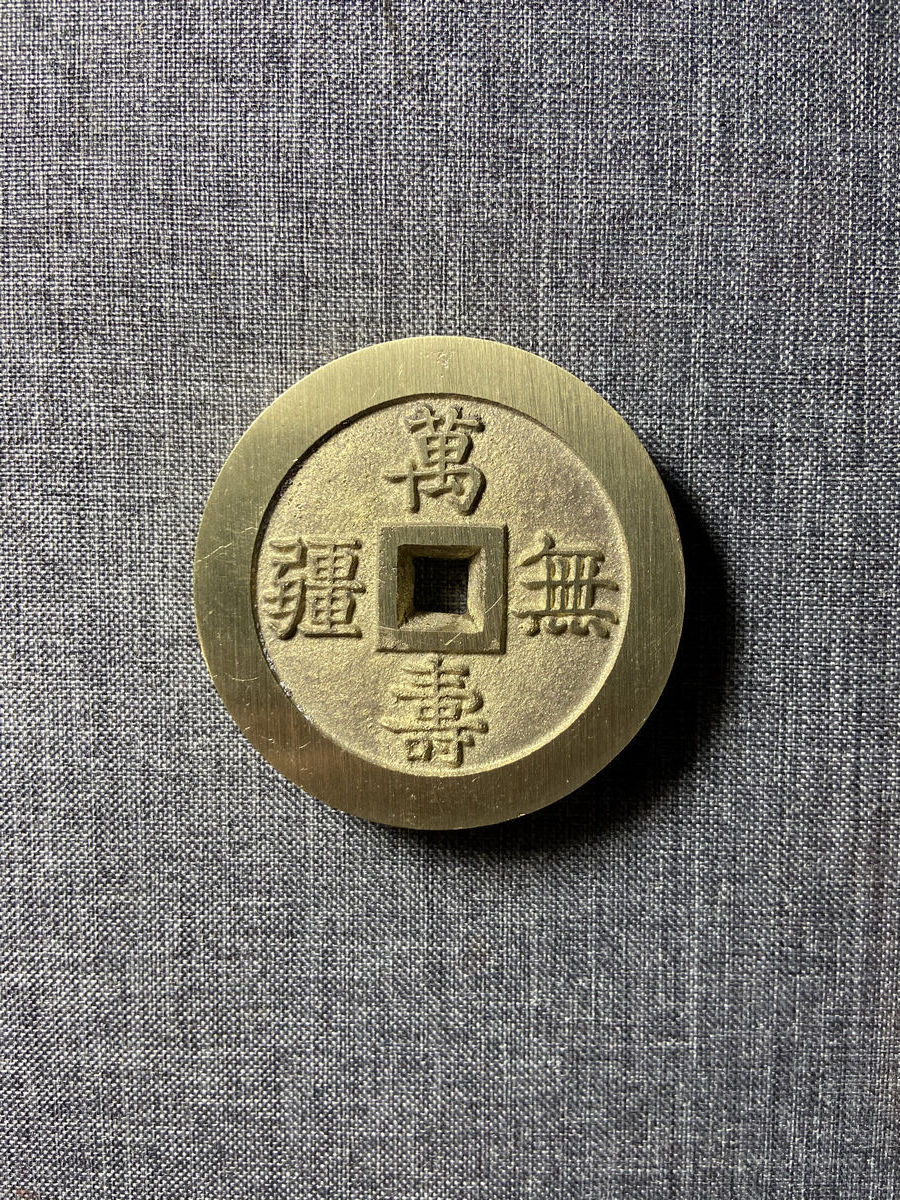 万寿无疆背大雅,据载乃官钱局为慈禧太后大寿专铸的祝寿纪念花钱,具有极强的专属性,故非一般宫钱或民间所铸各类花钱可比。正面楷书“万寿无疆”四字寓意吉祥,背文篆书“大雅”,是慈禧太后叶赫那拉氏的书斋名。