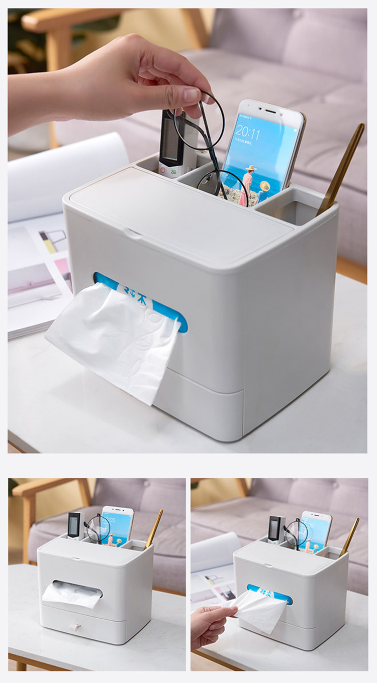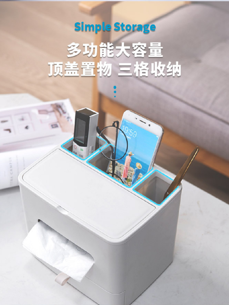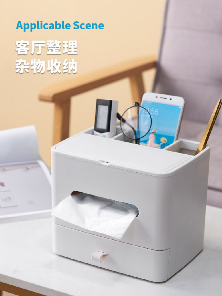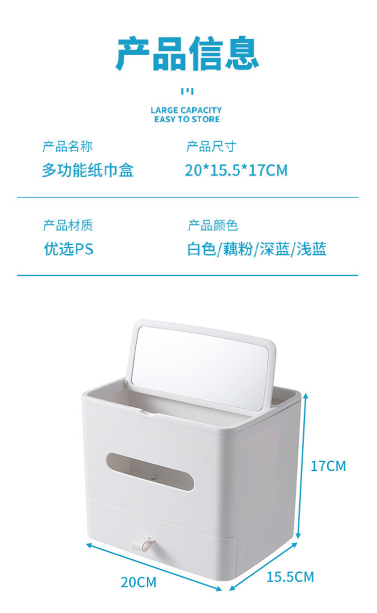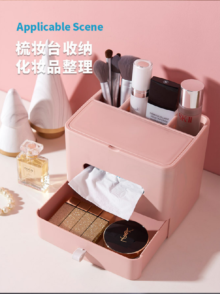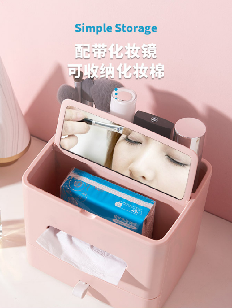 【多功能收纳+镜子+纸巾盒】家用客厅餐厅茶几纸巾盒 简约可爱化妆品收纳杂物整理盒