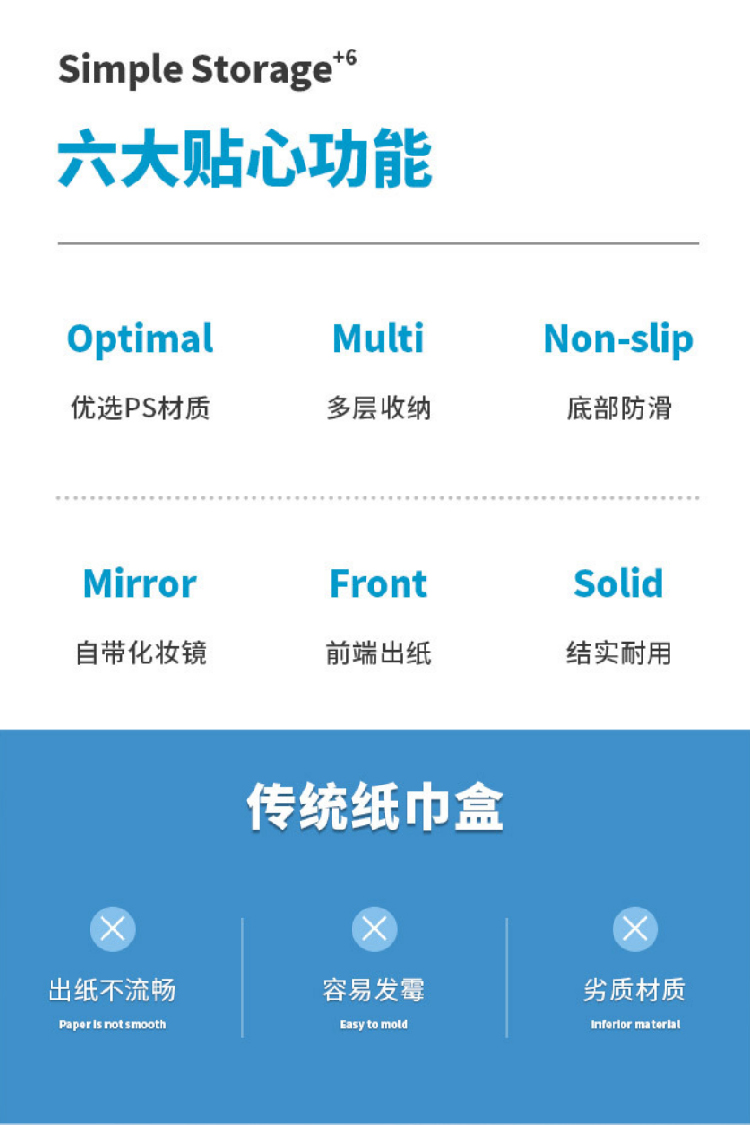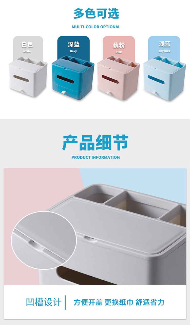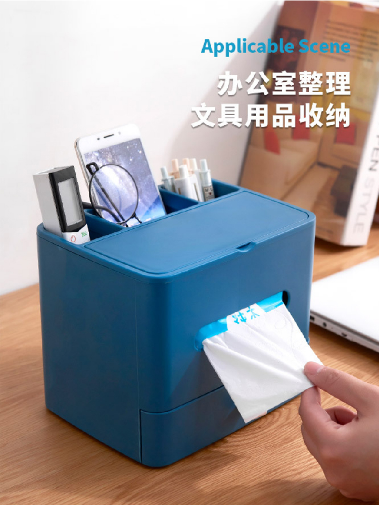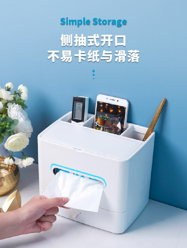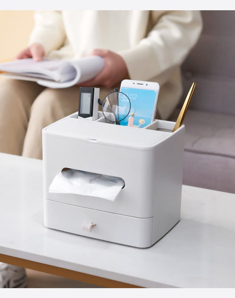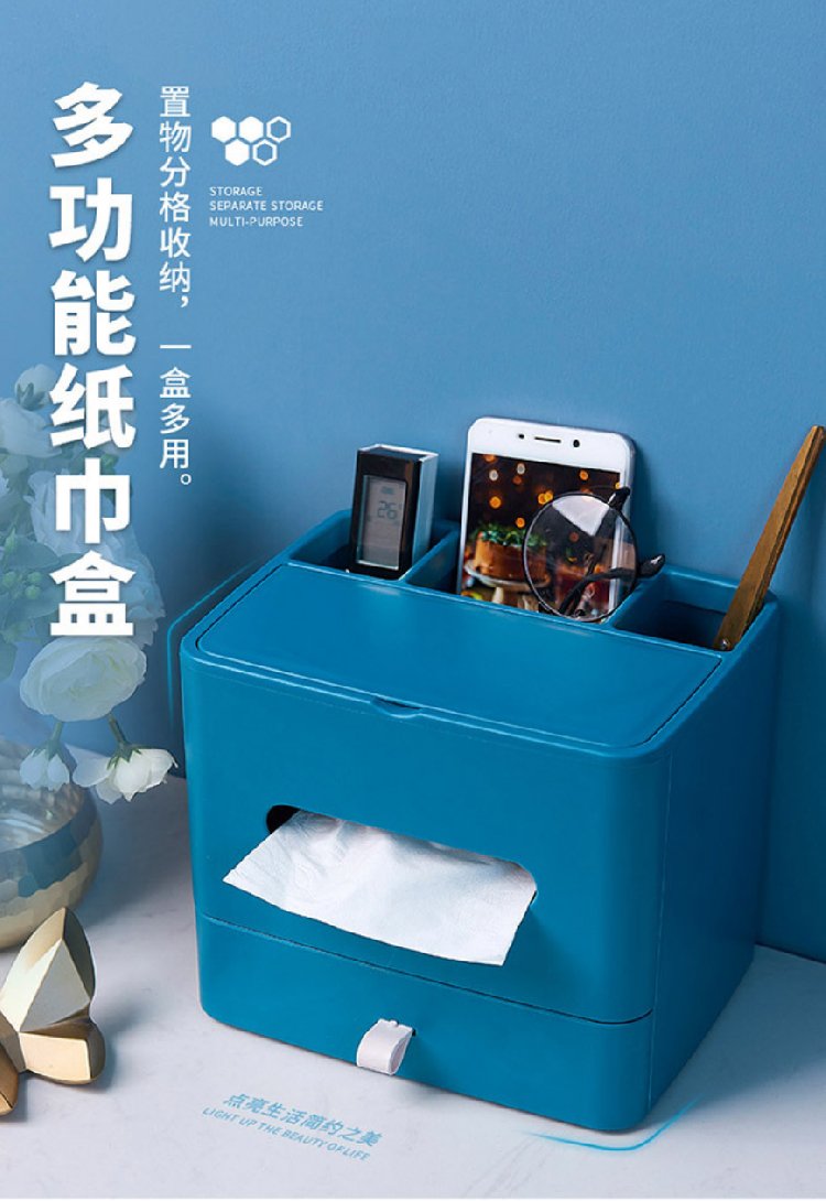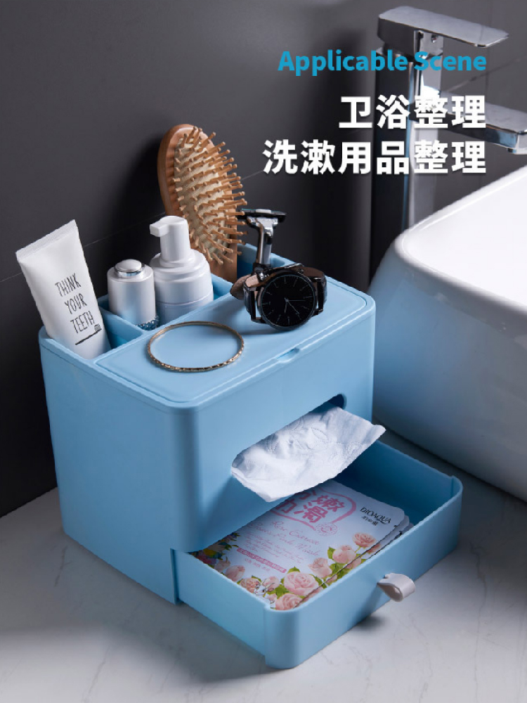 【多功能收纳+镜子+纸巾盒】家用客厅餐厅茶几纸巾盒 简约可爱化妆品收纳杂物整理盒