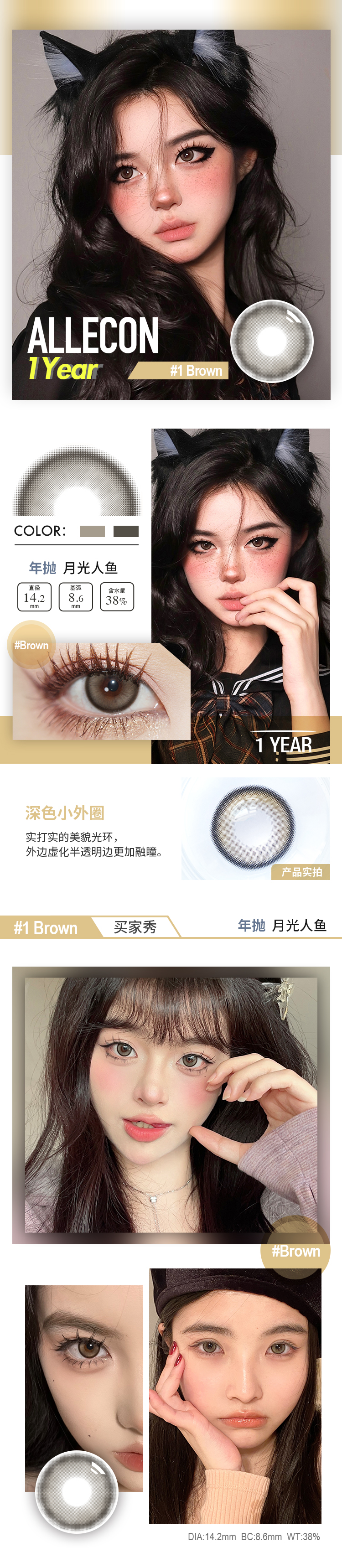 Allecon 年抛 月光人鱼 棕/星海歌姬 灰 (14.2mm,最高1000度)