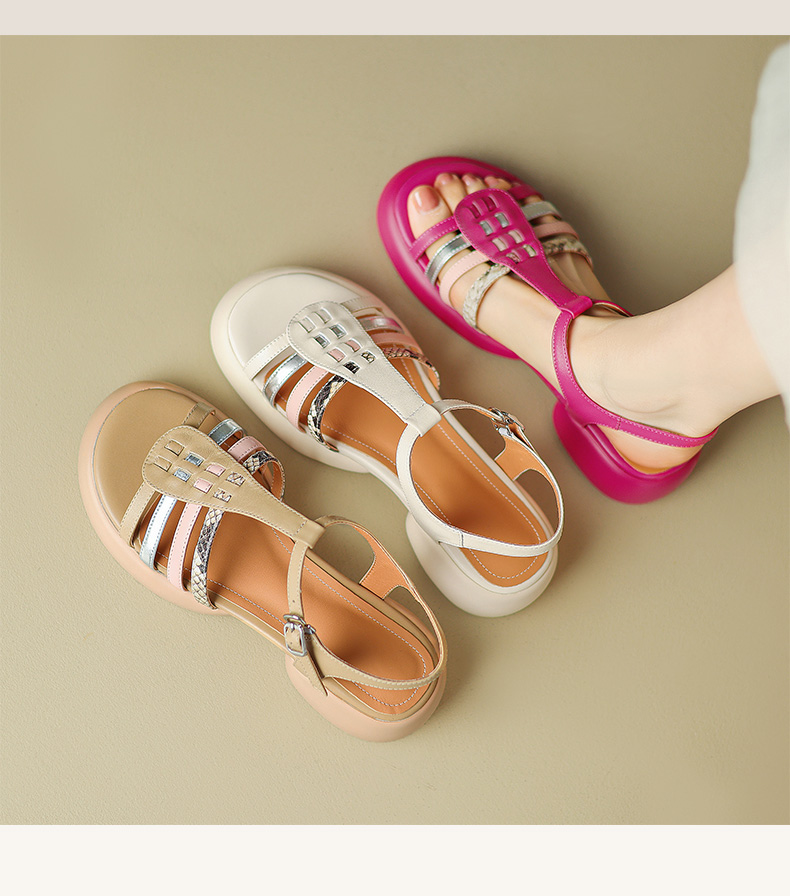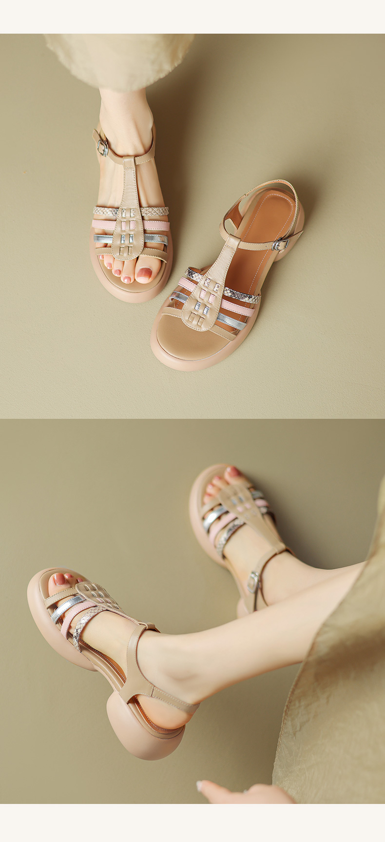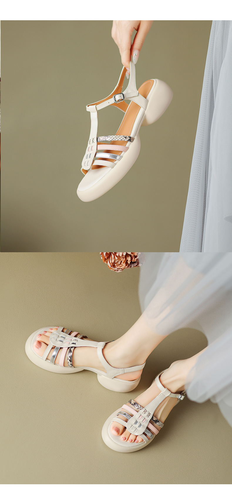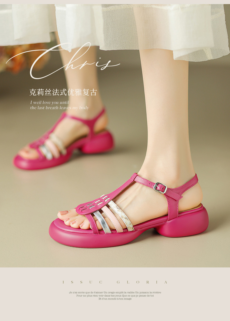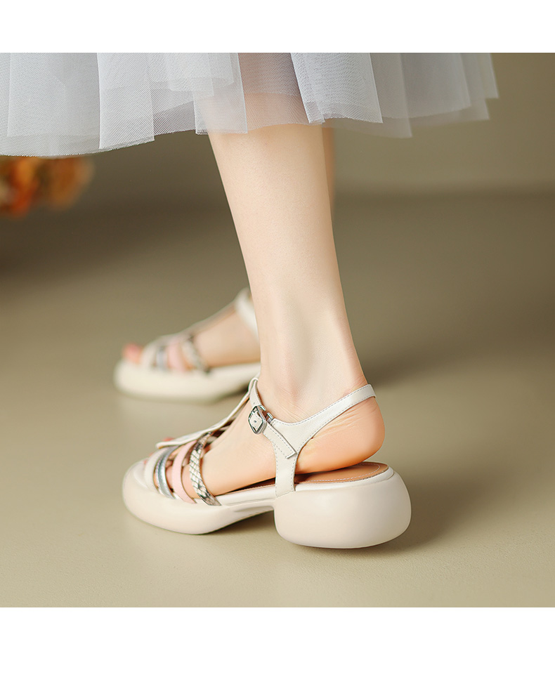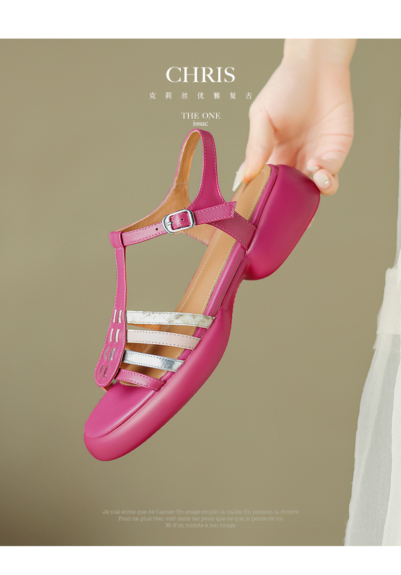 复古罗马凉鞋厚底高帮鱼嘴鞋后拉链松糕底凉靴