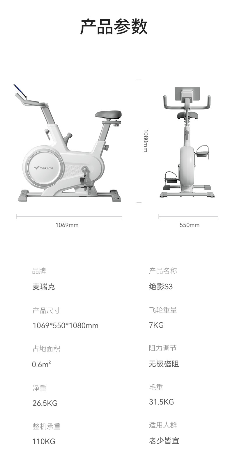 【麦瑞克绝影S3动感单车】家用静音运动自行车 室内磁控运行静音健身车