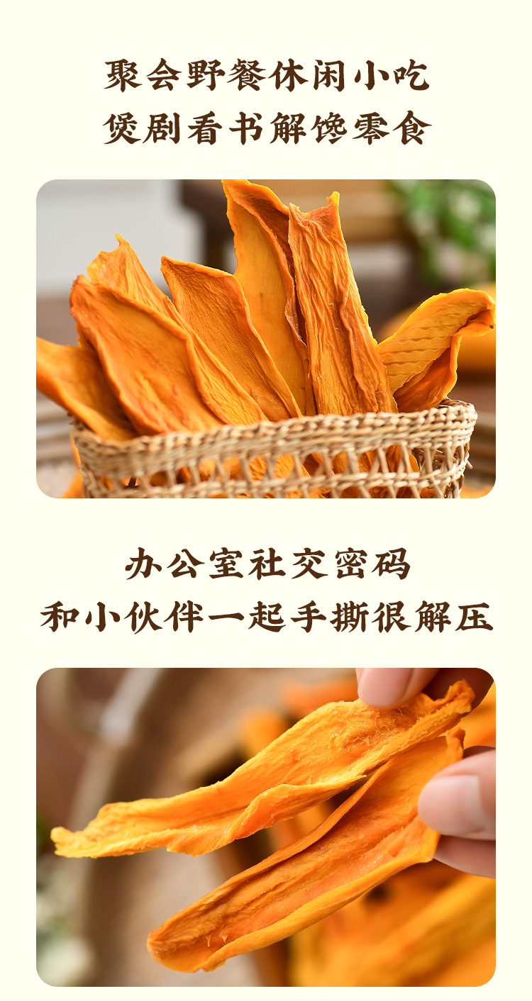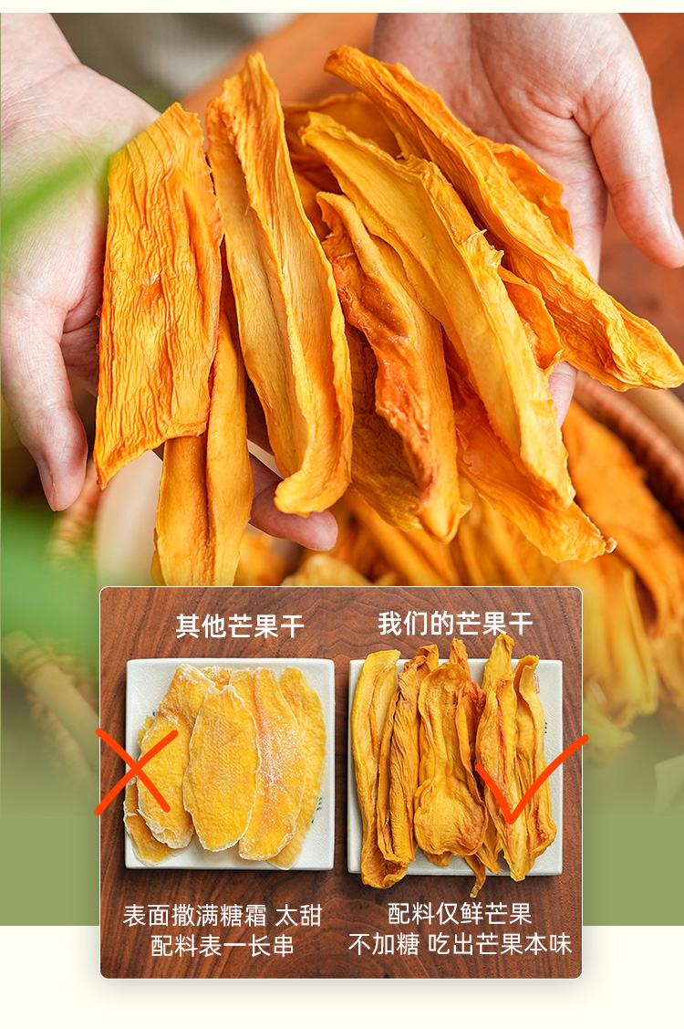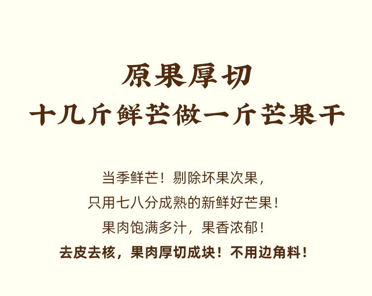不加糖的「手工芒果干」 配料鲜芒果「一方云拾」新品!当季自然熟品种!拒绝糖精、香精、色素、防腐剂!大大块厚切果干!酸甜软糯有嚼劲!芒果脑袋小心炫上瘾